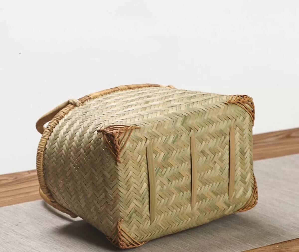 竹編み上げカゴバック  手作りバスケット お洒落買い物カゴ 収納バッグ