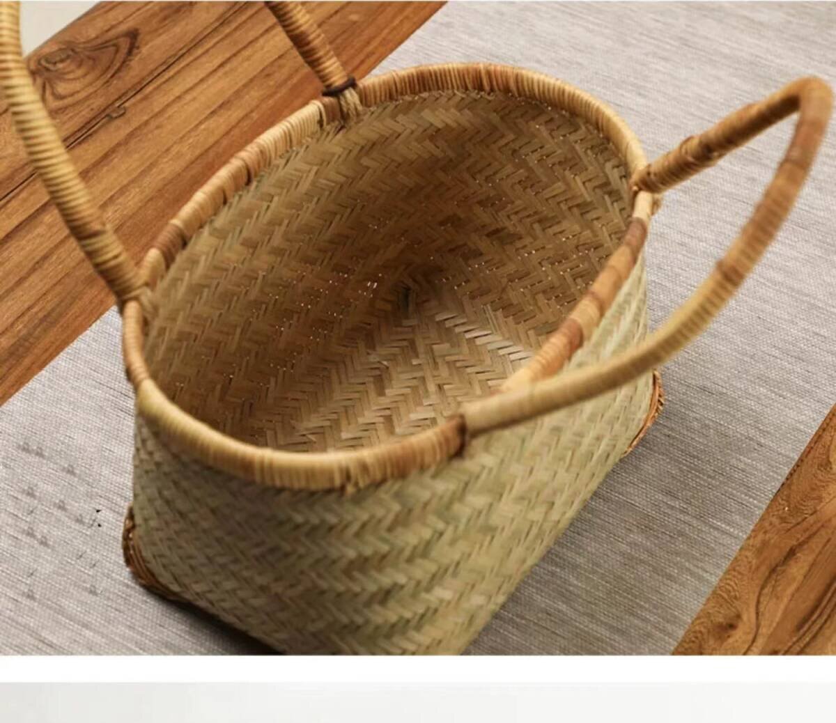 Product name: 竹編み上げカゴバック  手作りバスケット お洒落買い物カゴ 収納バッグ
