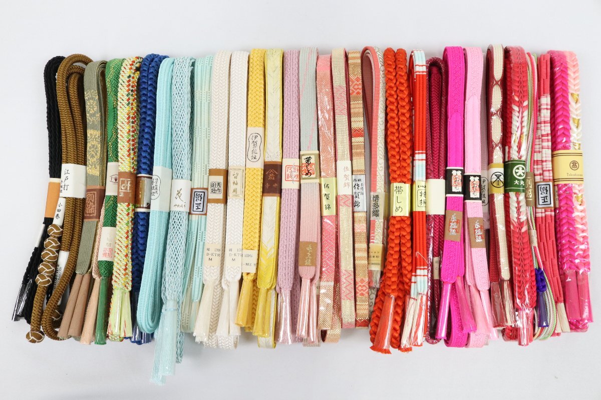 未使用品 正絹 帯締め まとめて 大量 30点 伊賀手組紐 佐賀錦 博多織 江戸打 小田巻 平組 丸組 金糸 など 【彩irodori】1