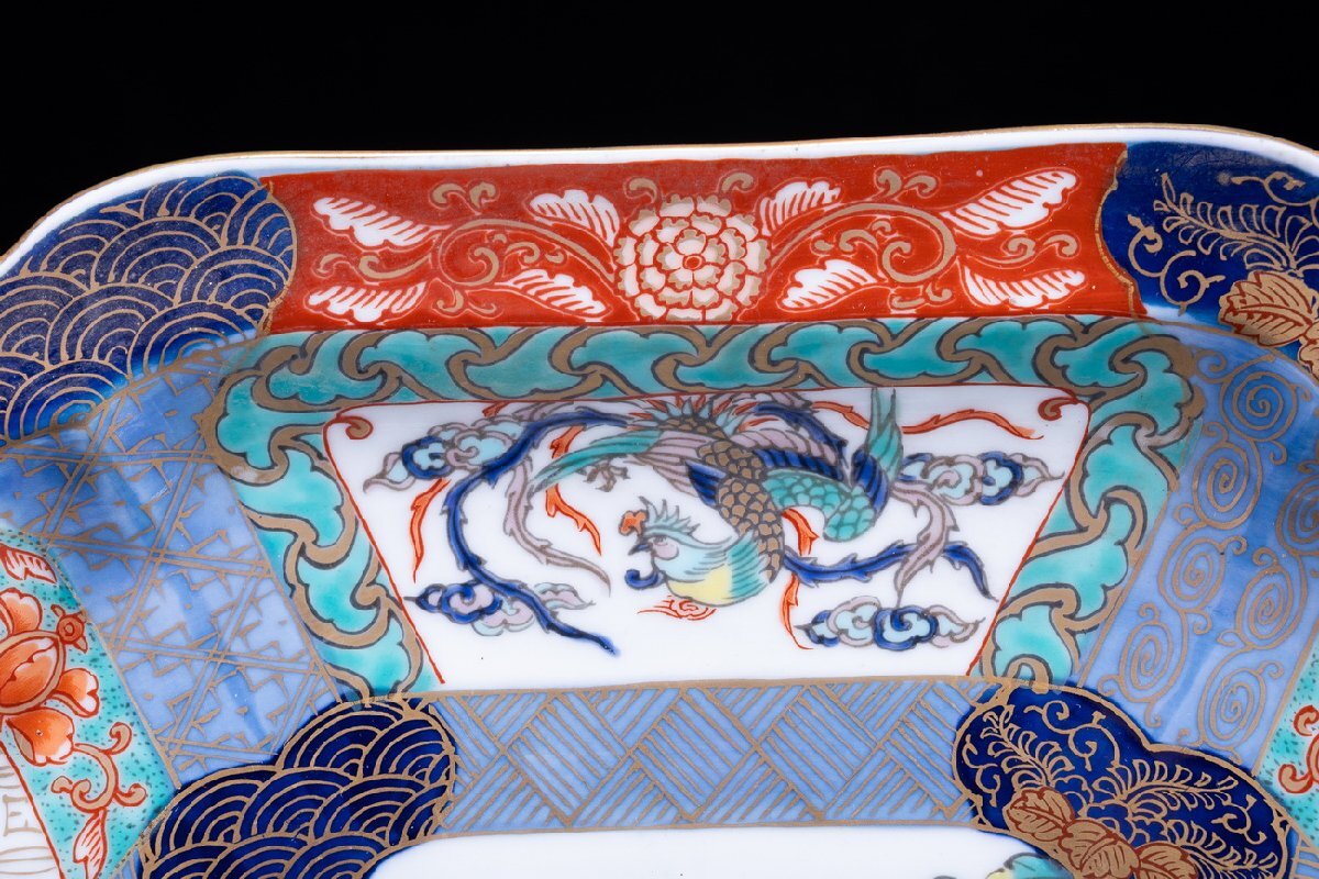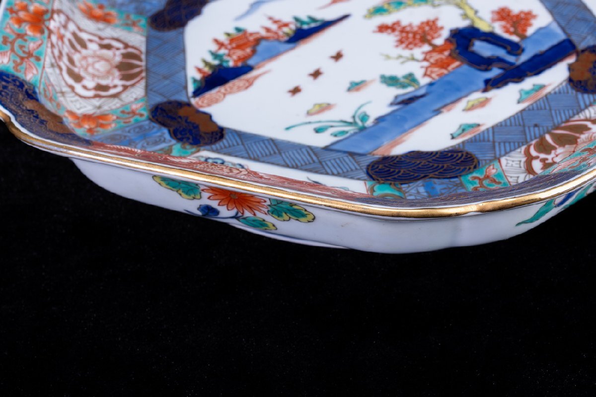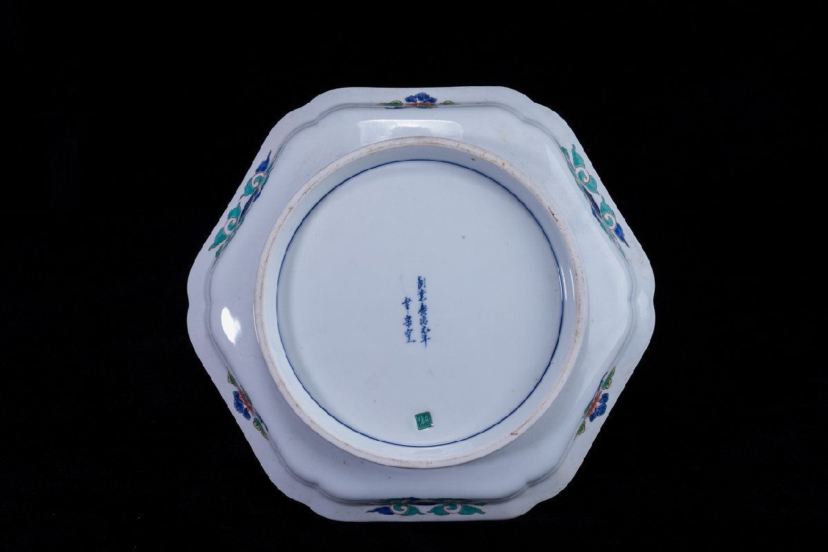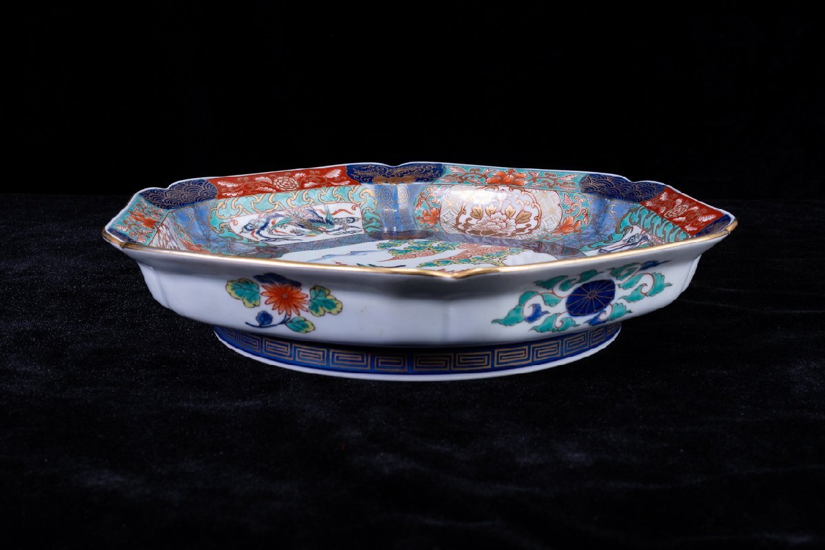 Product name: 【珍品堂】1円から M58-P8 有田焼 幸楽窯 古伊万里 在銘 染錦 錦色絵山水 六角皿 大皿 径31cm 和食器 懐石 骨董品 古美術