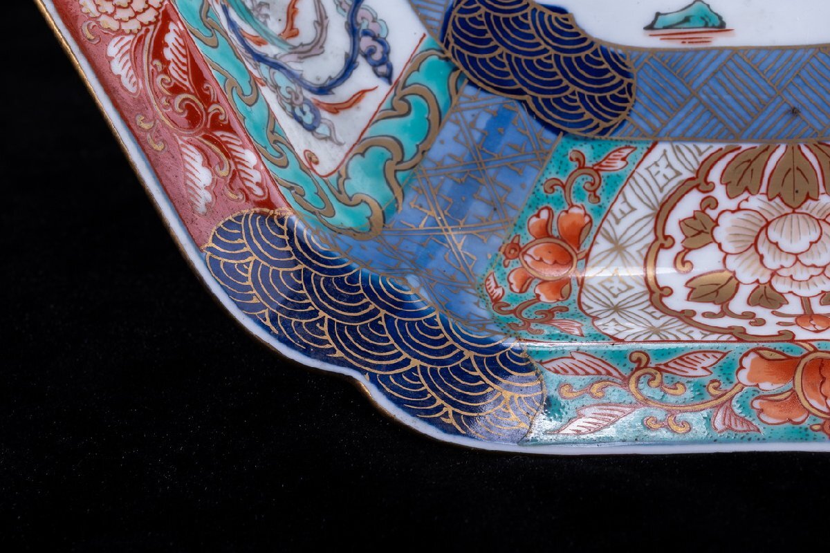 【珍品堂】1円から M58-P8 有田焼 幸楽窯 古伊万里 在銘 染錦 錦色絵山水 六角皿 大皿 径31cm 和食器 懐石 骨董品 古美術