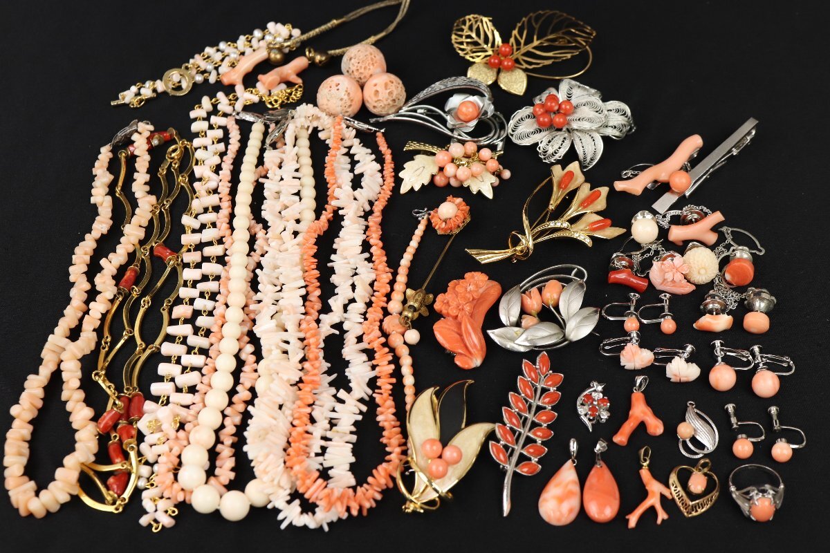 Product name: 珊瑚 アクセサリー まとめて 約366g ネックレス ブローチ トップ イヤリング タイピン SILVER 等 シルバー サンゴ コーラル 【彩irodori】