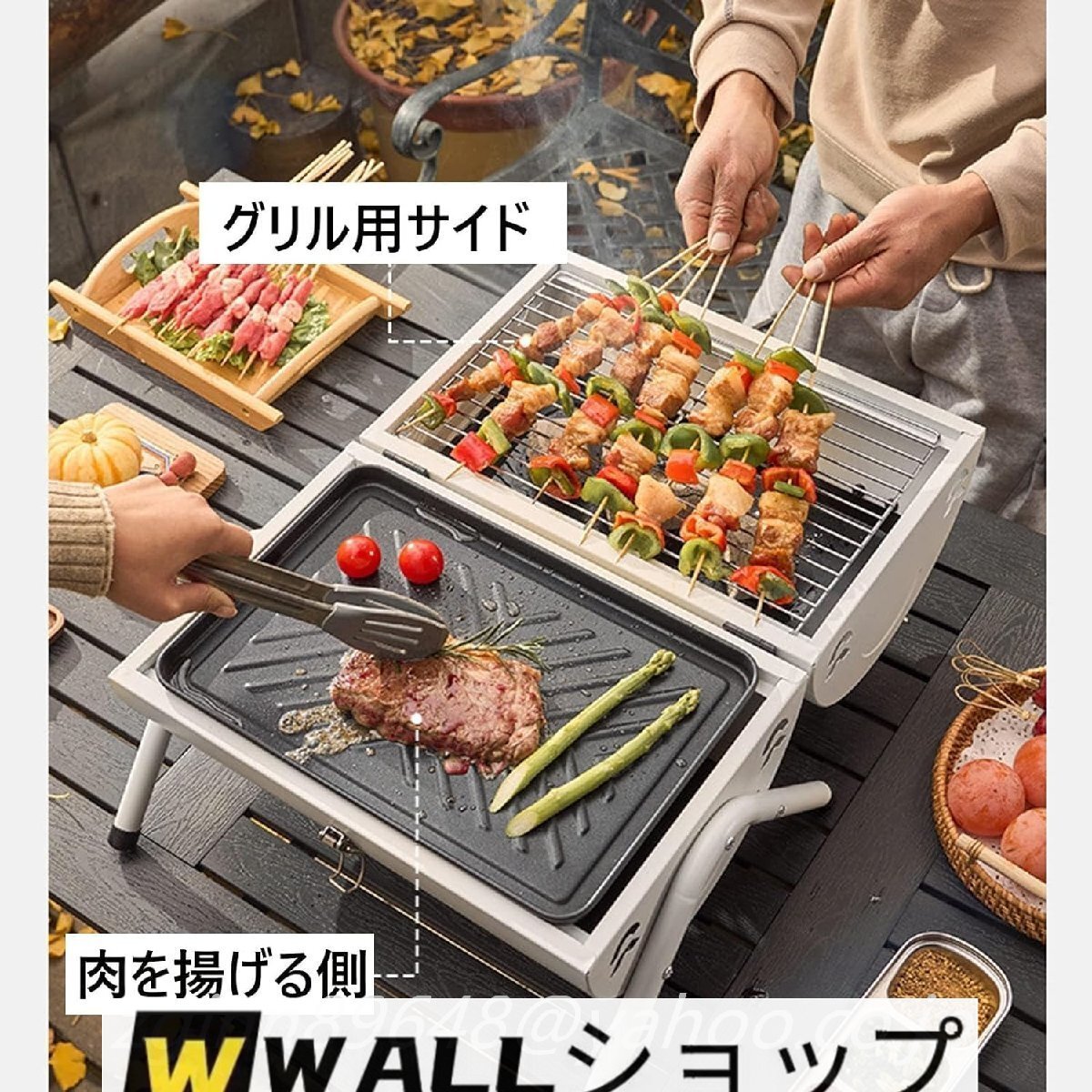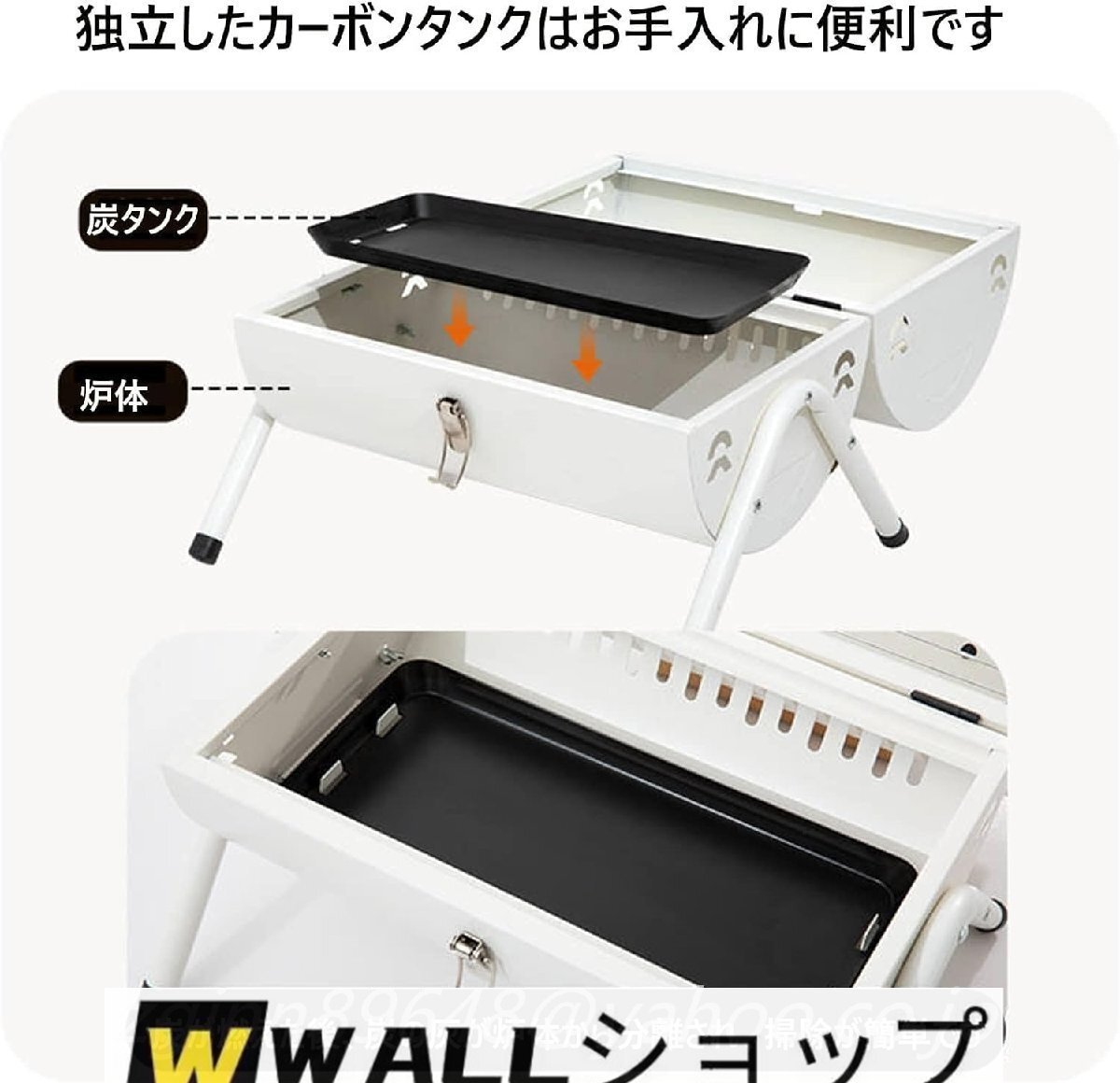 製品サイズ約37.5 cm*25 cm*38 cm、重量約4 KG、白と黒の2種類があり、2つの焼き網、2つの炭受けと1つの焼き皿が付属しています。多機能なバーベキューコンロで、屋外バーベキュー、パーティー、ピクニックに適しています。