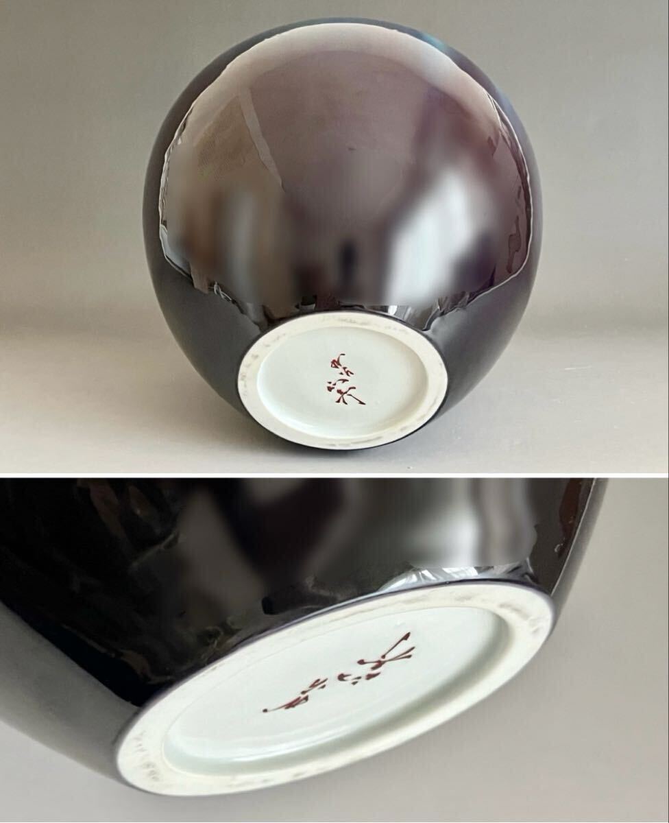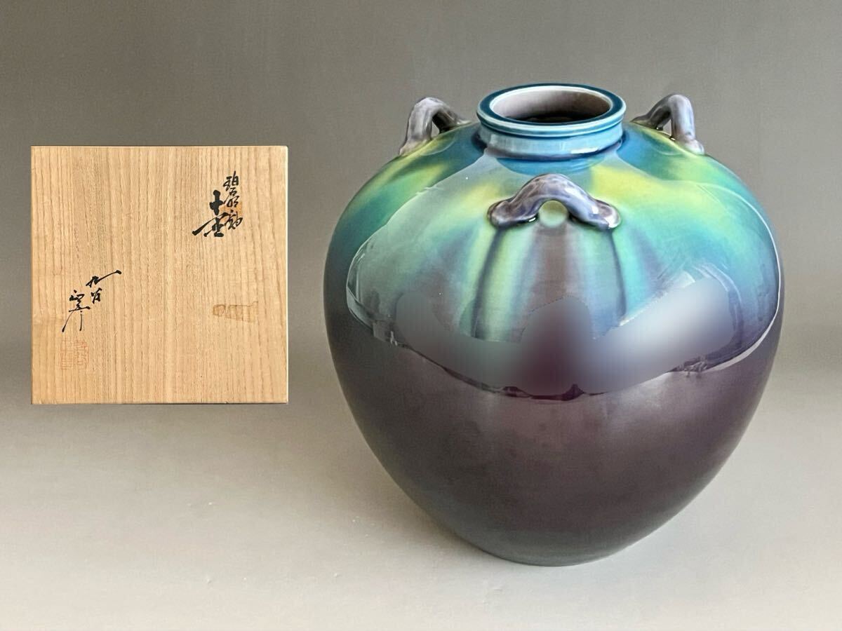 ★ 徳田正彦 (人間国宝 三代 徳田八十吉)九谷焼 碧明釉 壷 三耳壷 花入 花器 茶道具