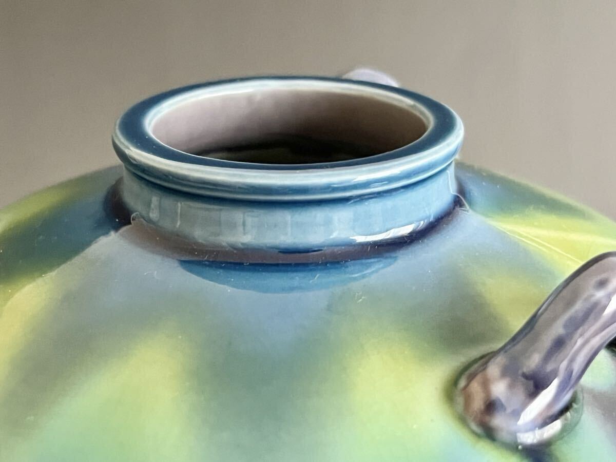 Product name: ★ 徳田正彦 (人間国宝 三代 徳田八十吉)九谷焼 碧明釉 壷 三耳壷 花入 花器 茶道具
