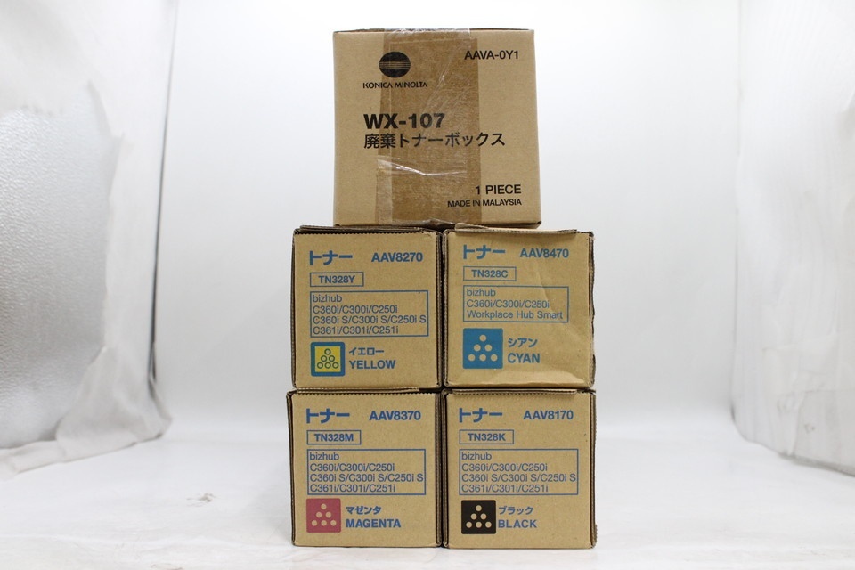 未使用 コニカミノルタ 純正 トナー TN328 4色(C/M/Y/K) おまけ(廃トナーボックス)付き KONICA MINOLTA IT77SID8H363 -D-P17-byebye