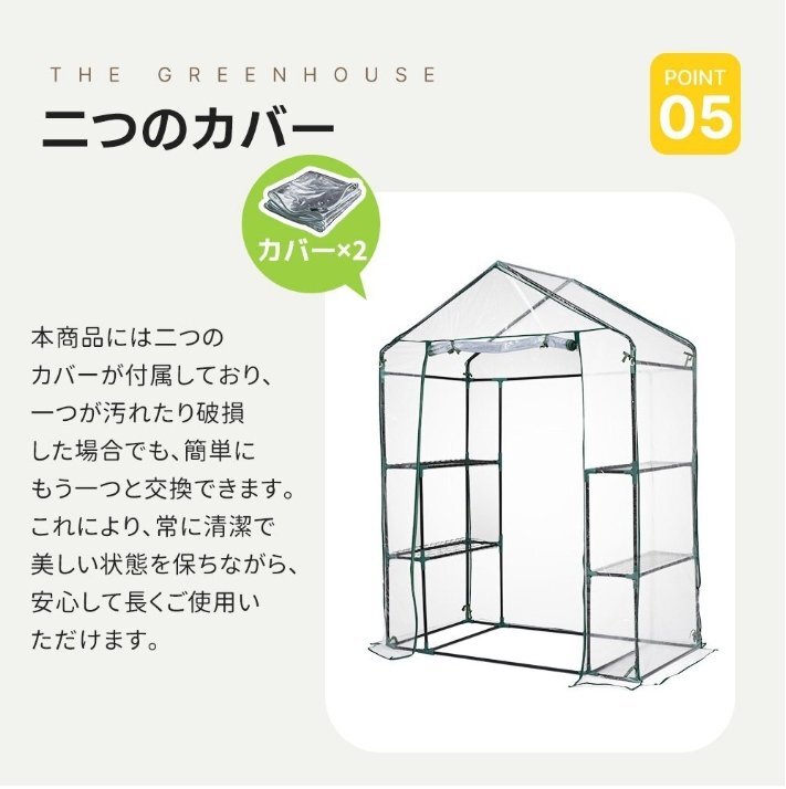 スピード発送*ビニール温室 2枚カバー付き 温室 左右2段 ベランダ 家庭用 ビニールハウス グリーンハウス 家庭菜園144*75*193CM