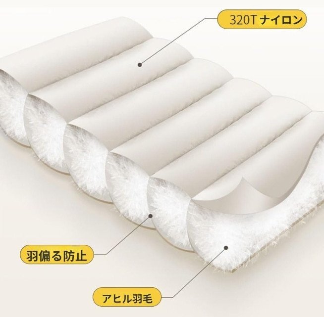 ★ホワイトダックフェザー2200g入り充填量、ふんわり軽くて暖かい。
