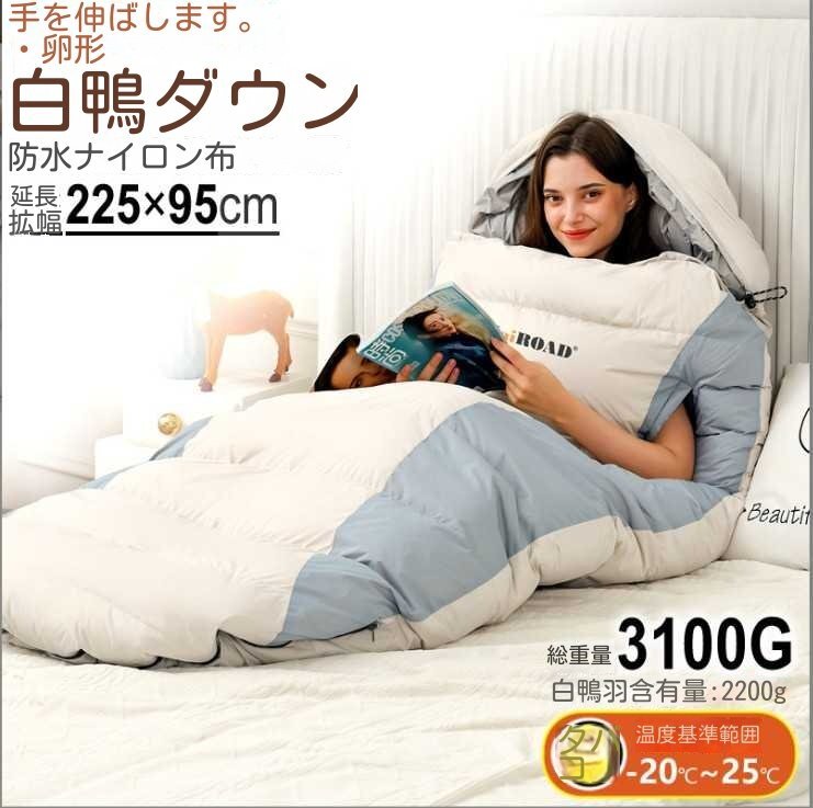 封筒型 寝袋 冬用 3.1kgダックダウン -25度耐寒 320T防水 両手出せる可能 防寒 アウトドア キャンプ 収納袋付 丸洗い 防災 登山 車中泊A220