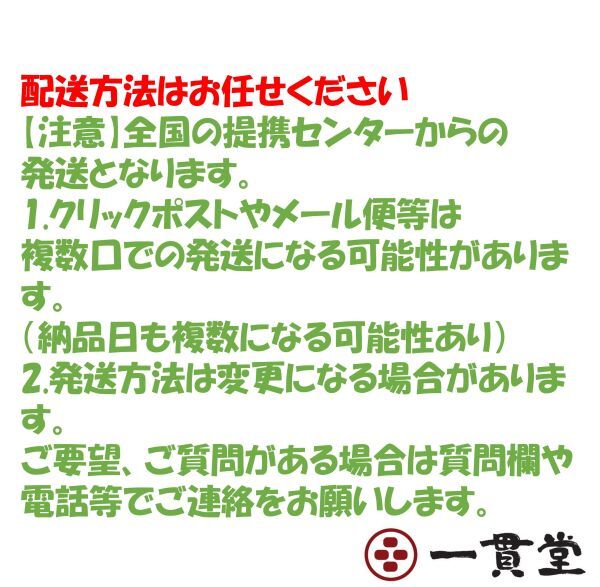 注文確認と入金確認は2日に1回の為、当日中の連絡が無い可能性がございます。(なるべく毎日確認はします)注文が集中している場合など対応が追い付かず連絡が深夜~翌日になる場合がございます。発送メールは必ず送信しております。また変更や連絡があればメールさせていただきますのでメールが届くように設定をお願いいたします。細部まで行き届かず申し訳ありません、何か間違いがございましたらお知らせ下さい。購入日(お支払い確認日)の翌日にメーカーへ配送依頼をかけさせていただきます、その翌日以降メーカーより出荷されます。基本的には購入日(お支払い確認日)の翌日~12日までには到着する予定ですが予定通りお届けでき無い事があります。必ず早くお届けできる保証はしておりません余裕をもってご注文ください。尚、連休中等は発送が遅れる可能性があります。ご不明点はお問い合わせ下さい。配送方法は変更になる場合も御座います。