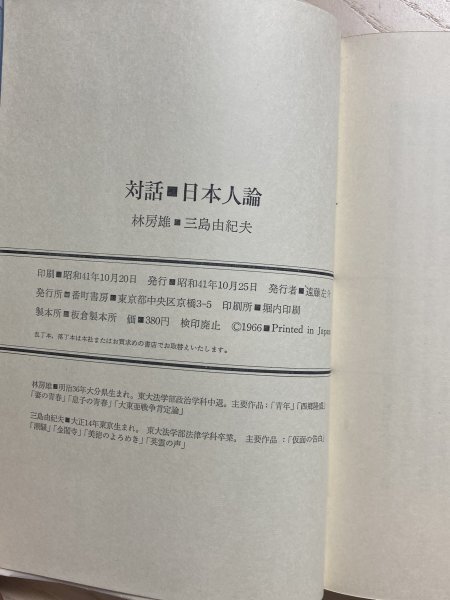 Product name: 対話日本人論 初版  林房雄三島由紀夫