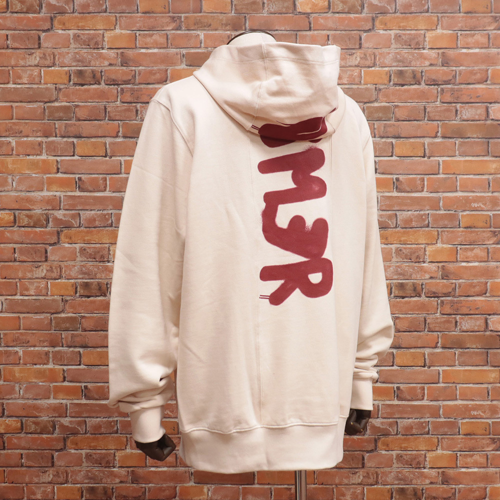 1円/DISCLAIMER/Mサイズ/訳 パーカー フーディー バックプリント スプレー ロゴ 切替 スウェット 新品/ライトベージュ/mc253/