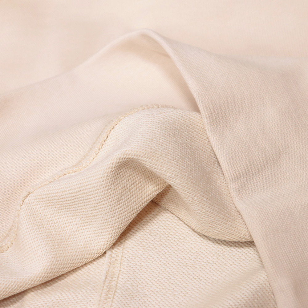 素材にはコットン100%の裏毛スウェットを採用。しっかりとした厚みとタフな質感が魅力です。デイリーに着用しても型崩れしにくく、長くご愛用いただけます。