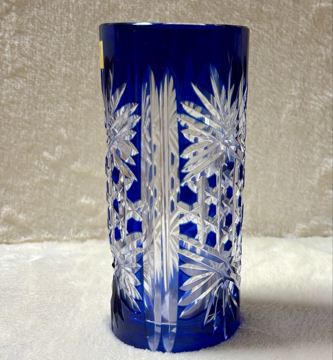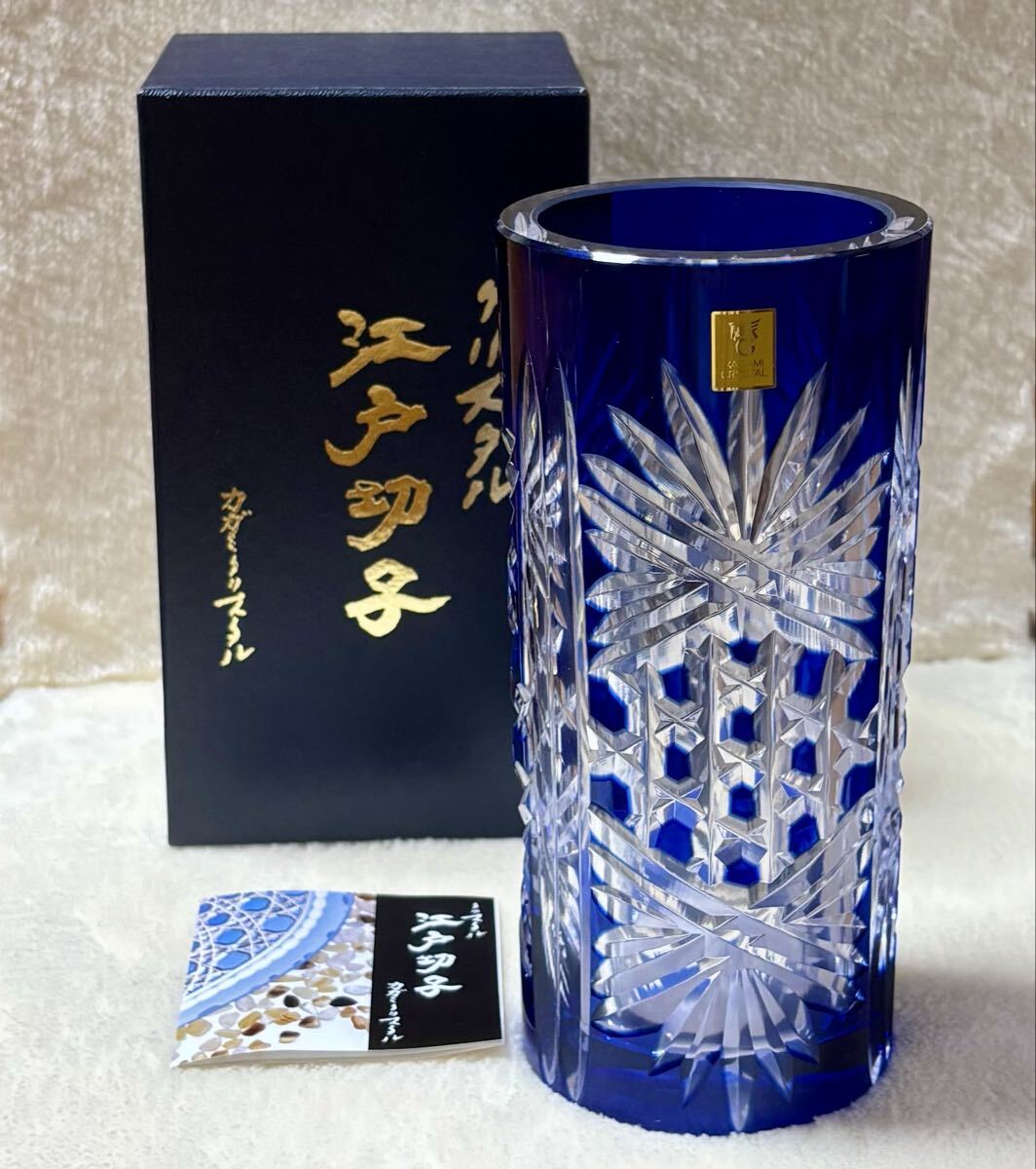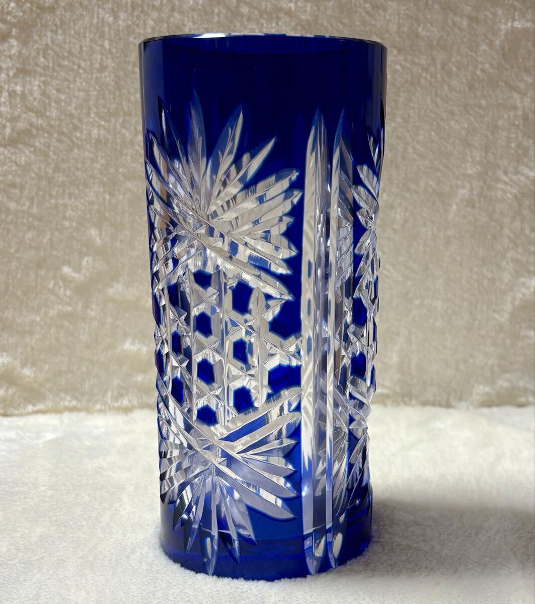 ◎未使用品 ◆カガミクリスタル 江戸切子◆花瓶/伝統工芸品/ブルー/青 ◎箱あり