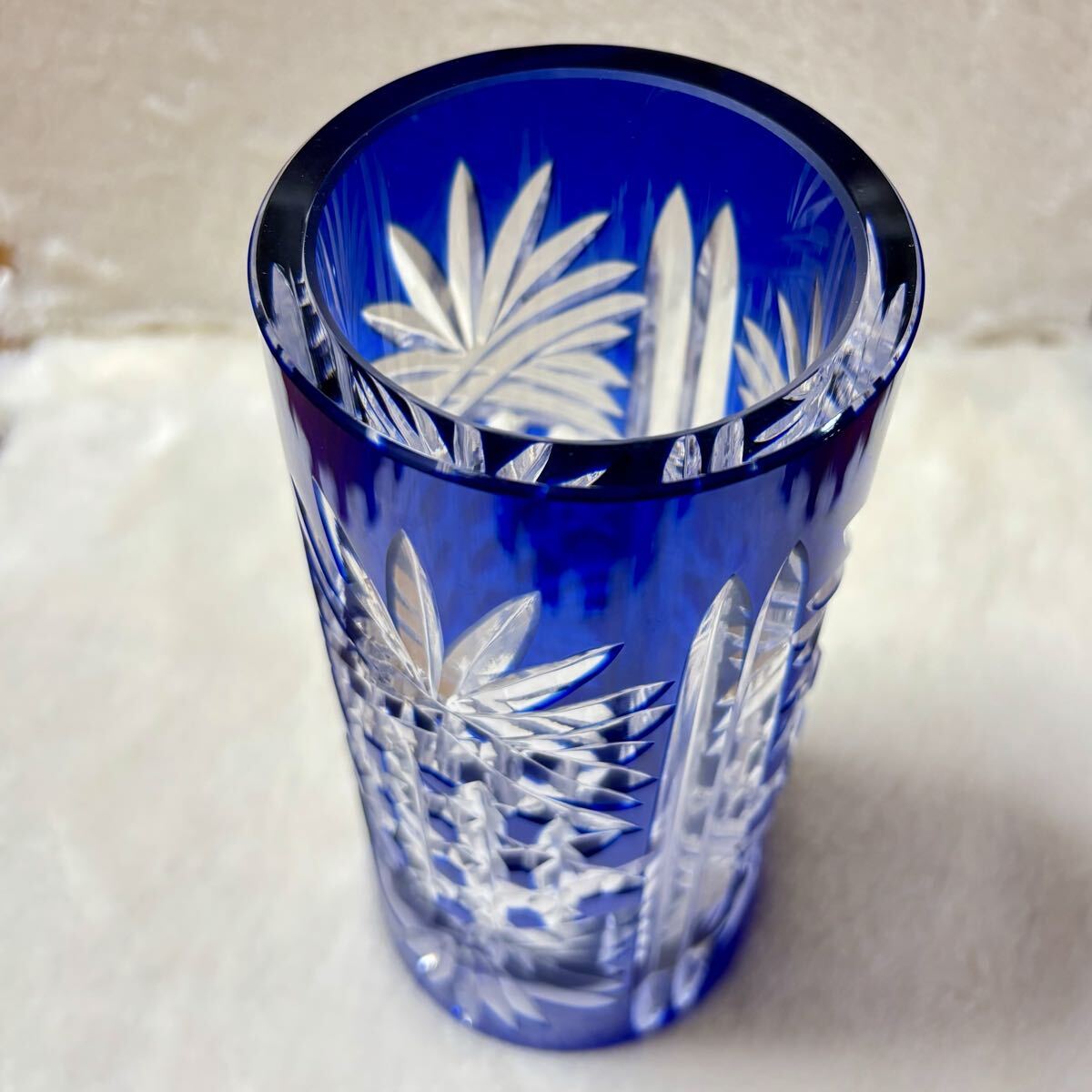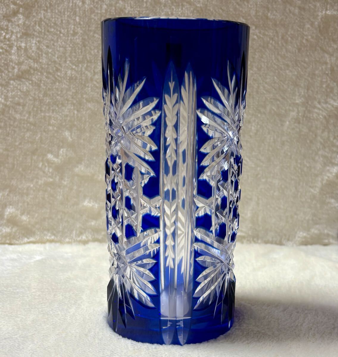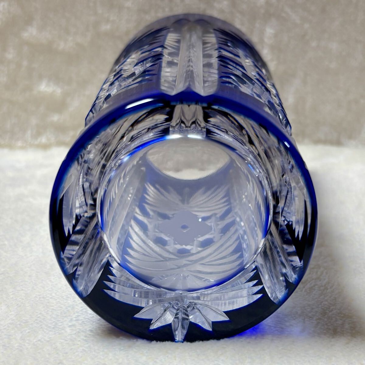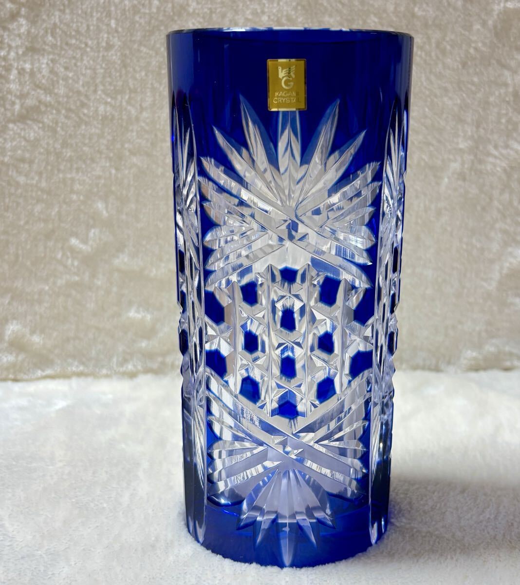 ◎未使用品 ◆カガミクリスタル 江戸切子◆花瓶/伝統工芸品/ブルー/青 ◎箱あり