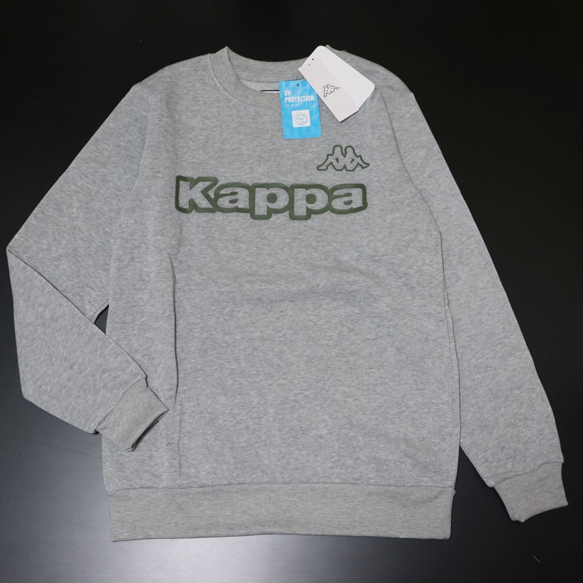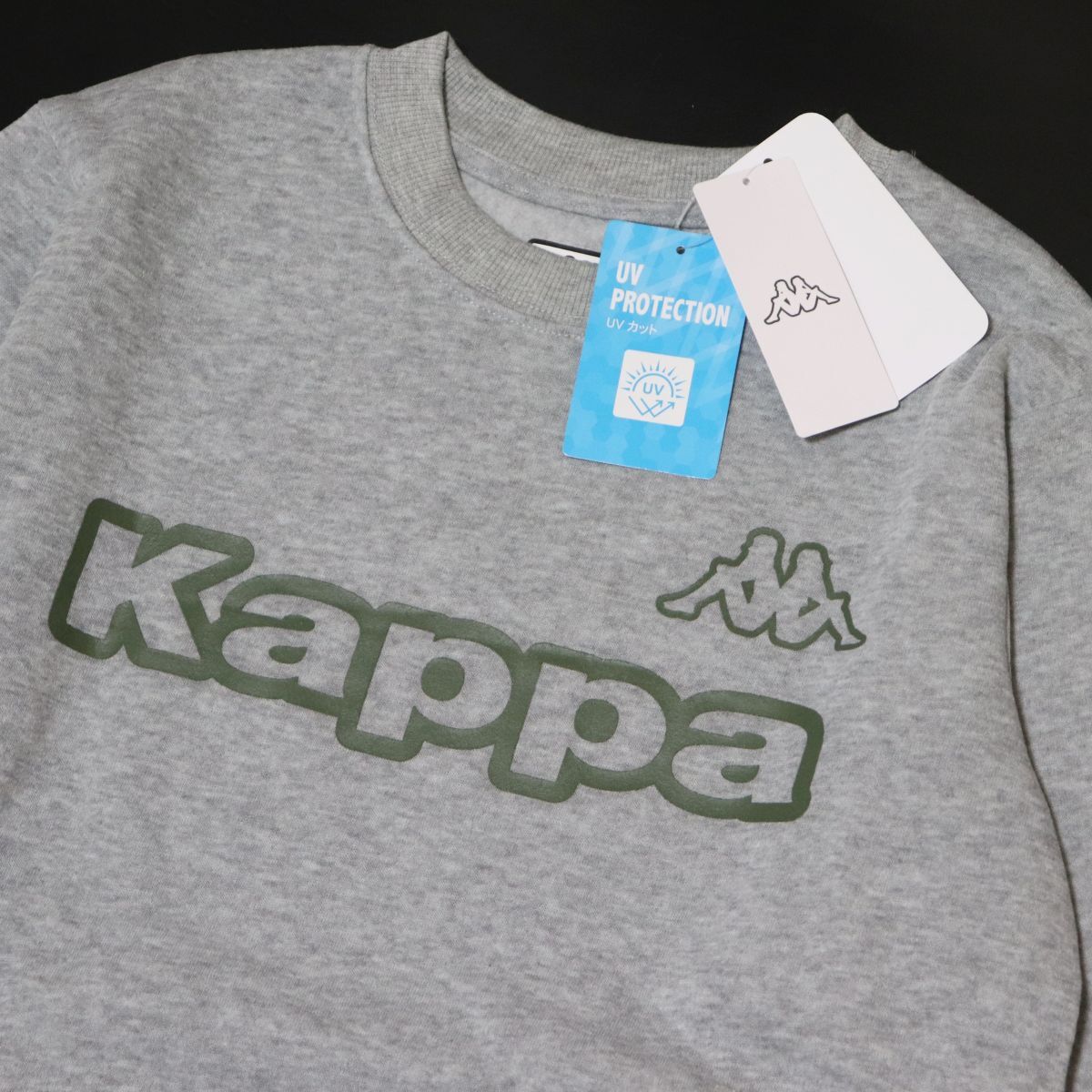 ★カッパ KAPPA メンズ UVカット 裏起毛 保温 ビッグロゴ スウェット トレーナー シャツ 灰 XLサイズ [245345-MGY-LL] 一 三 参★QWER★