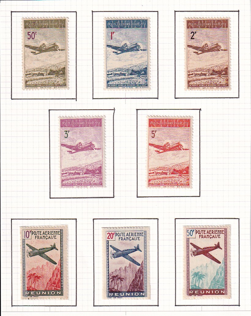 18 レユニオン【未使用】<「1942 SC#C6-C13 (航空) 飛行機と風景」 8種完 on リーフ切取り >