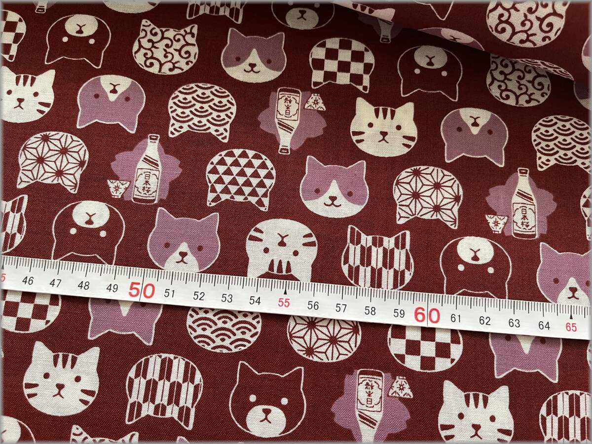 Product name: mets★5m*和柄ネコ猫フェイス*赤茶*スケア*コットン*生地布地29C