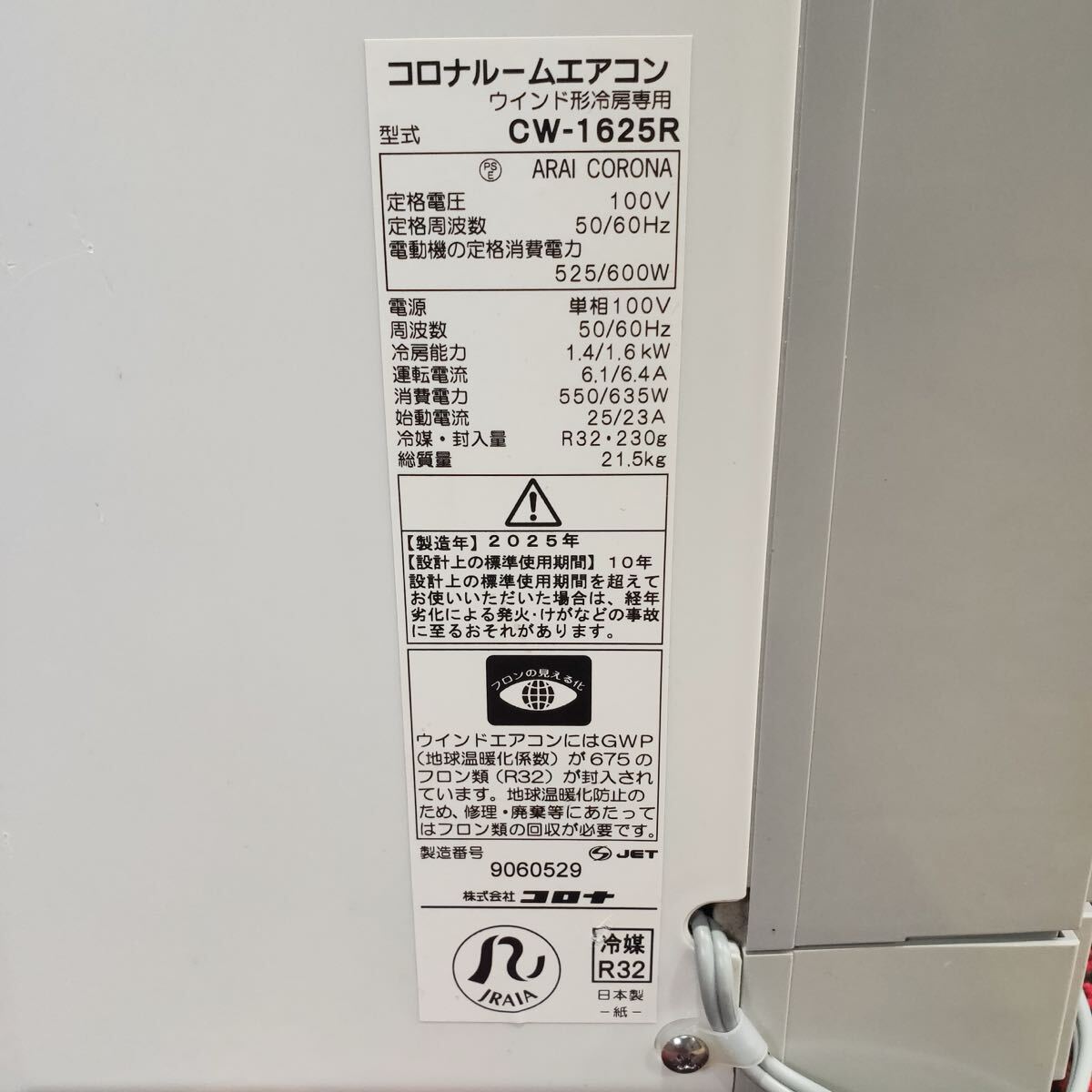 Product name: F 2025年製 CORONA CW‐1625R PURE WIND ルームエアコン ウインド形冷房専用 窓用ウインドエアコン コロナ モノトク