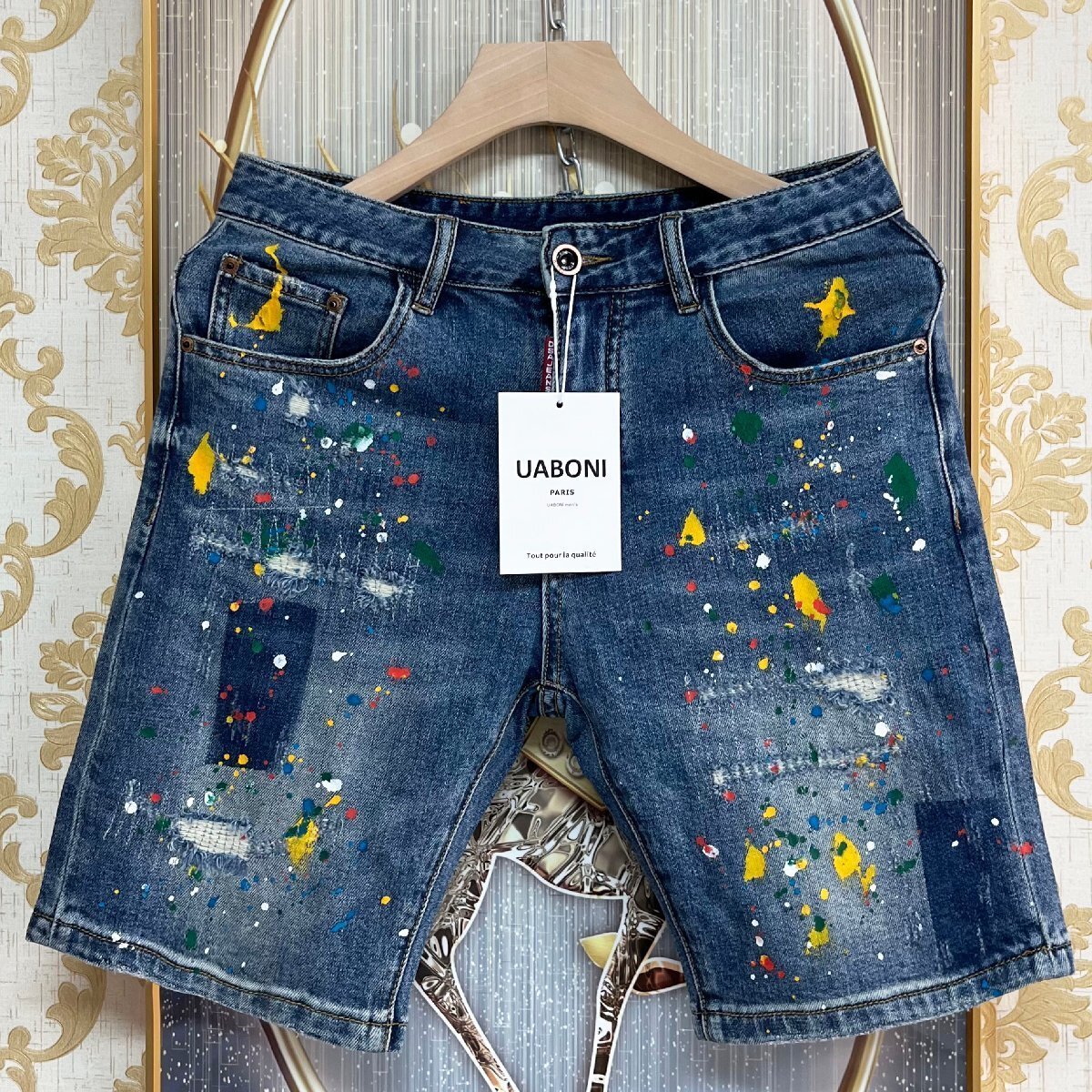 Product name: 個性EU製&定価3万◆UABONI*Paris*ショートパンツ*ユアボニ*パリ発◆コットン混 デニム 短パン スプラッシュ ストリート 遊び心 夏サイズ31