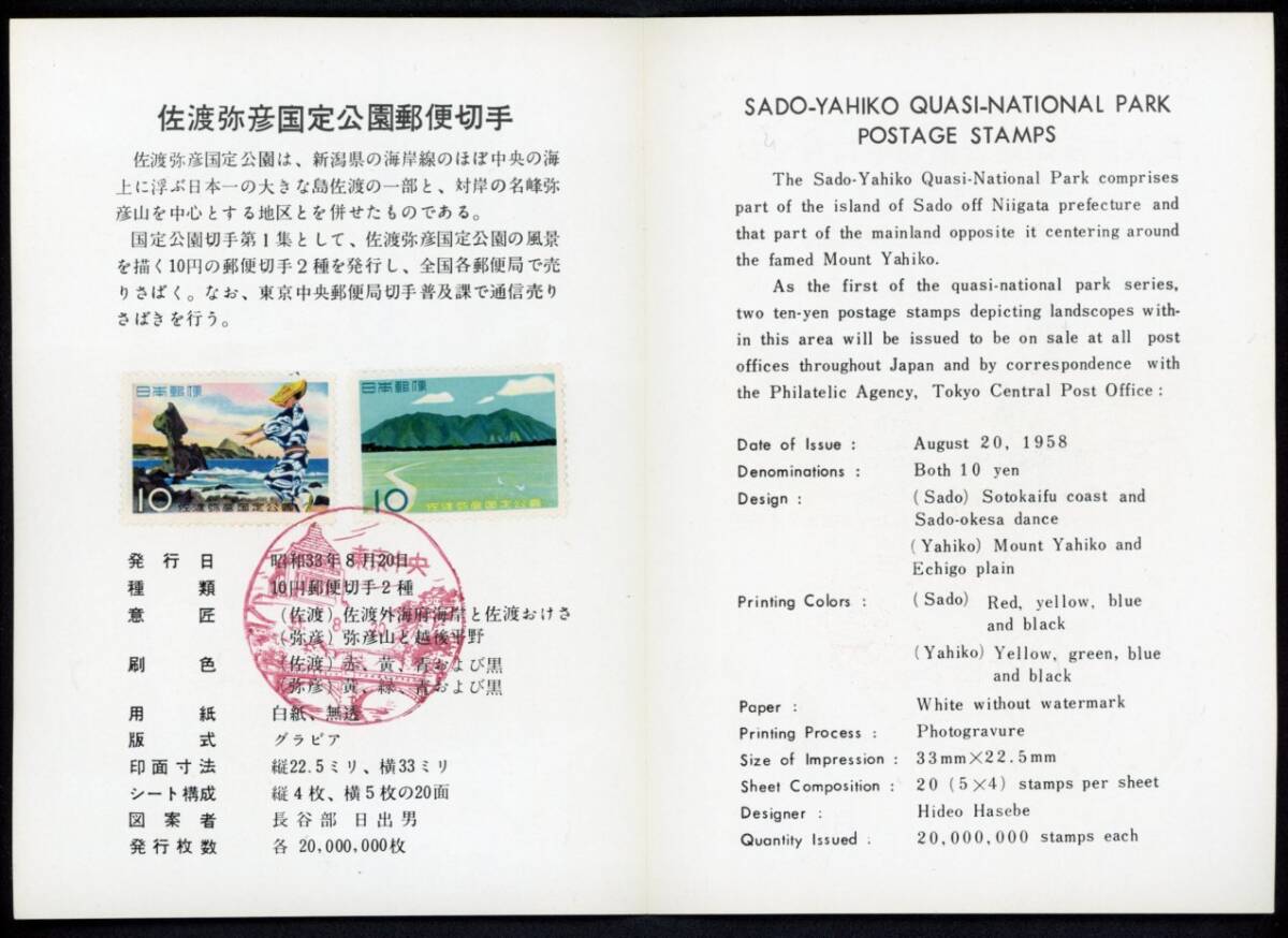 k15 初日印 佐渡弥彦国定公園 東京中央/33.8.20 解説書