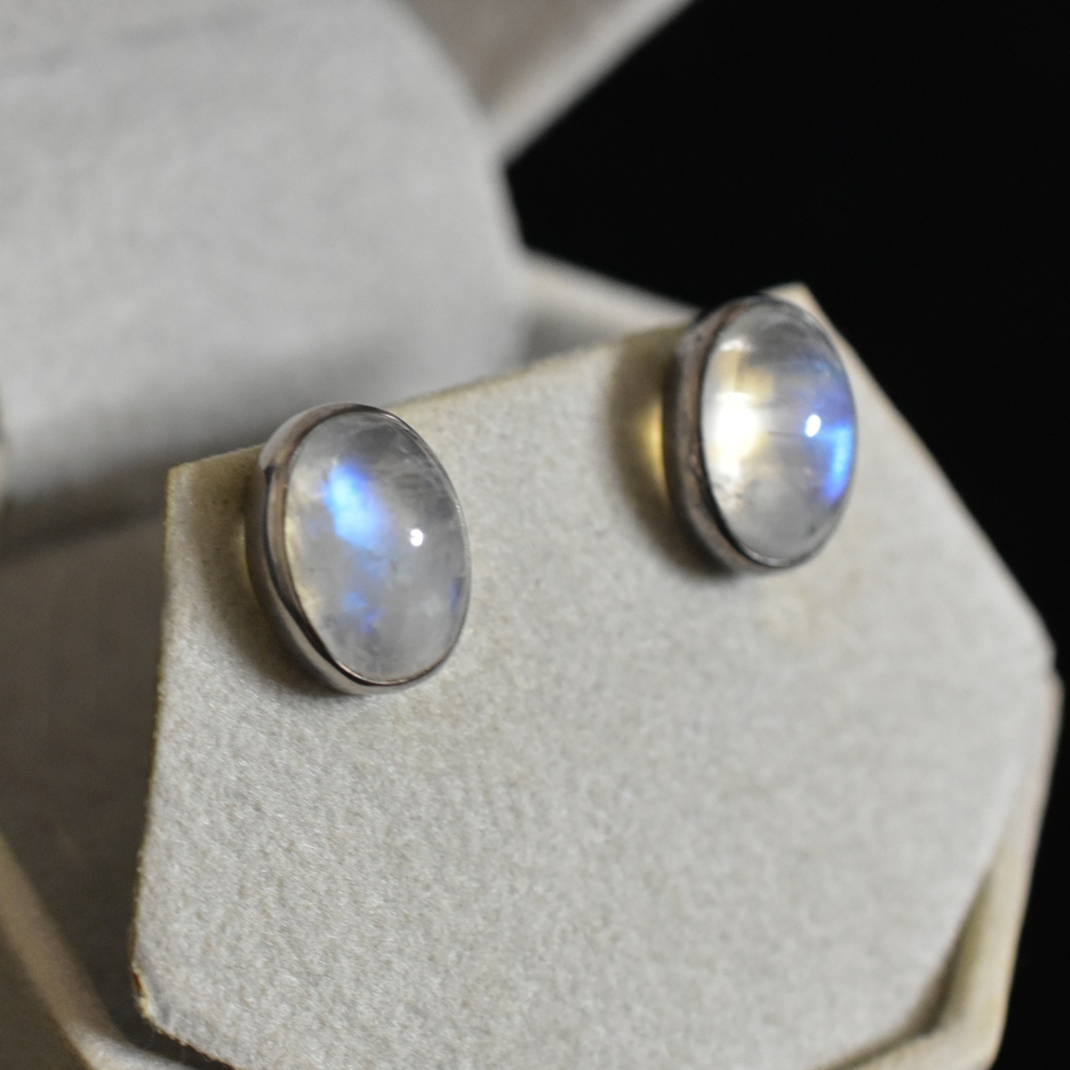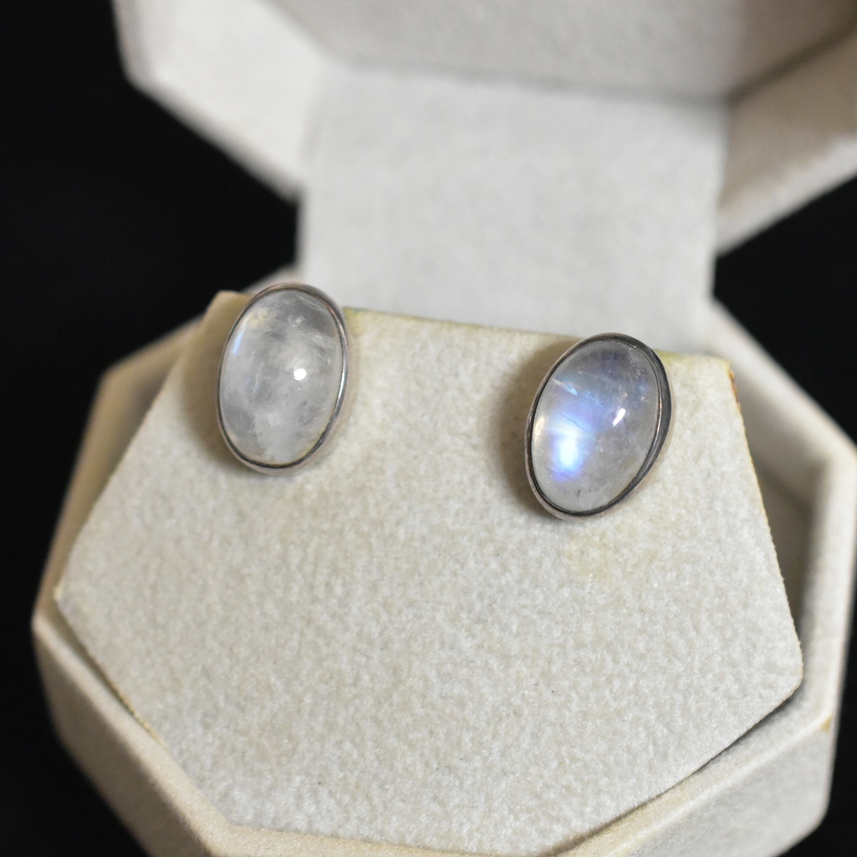 Product name: アンティーク/ヴィンテージ 大粒ブルームーンストーンのピアス 鏡面磨き キャッチに銀製刻印あり 本体の地金もおそらく銀です 本物保証