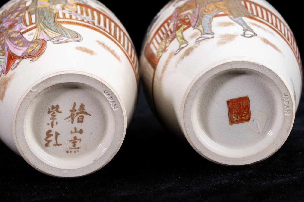 【珍品堂】1円からP54-V08 薩摩焼 椿山窯 紫紅 金彩色絵 繊細描き 在銘 人物文様 華瓶 2体 高16cm 共箱 木箱 花瓶 花生 花入 骨董品 古美術