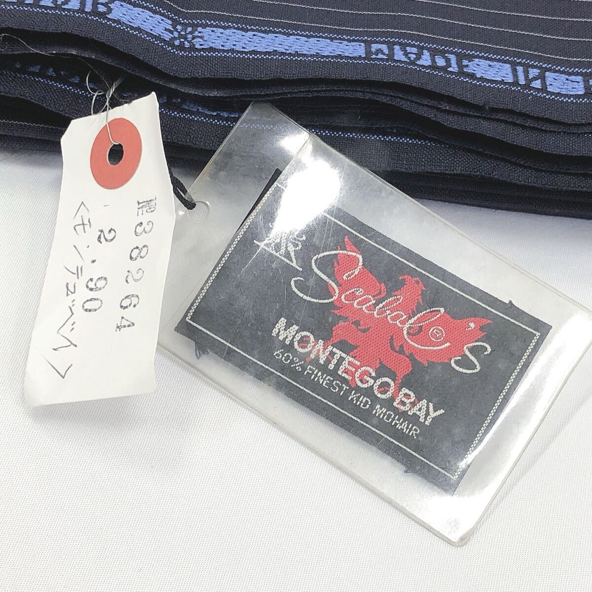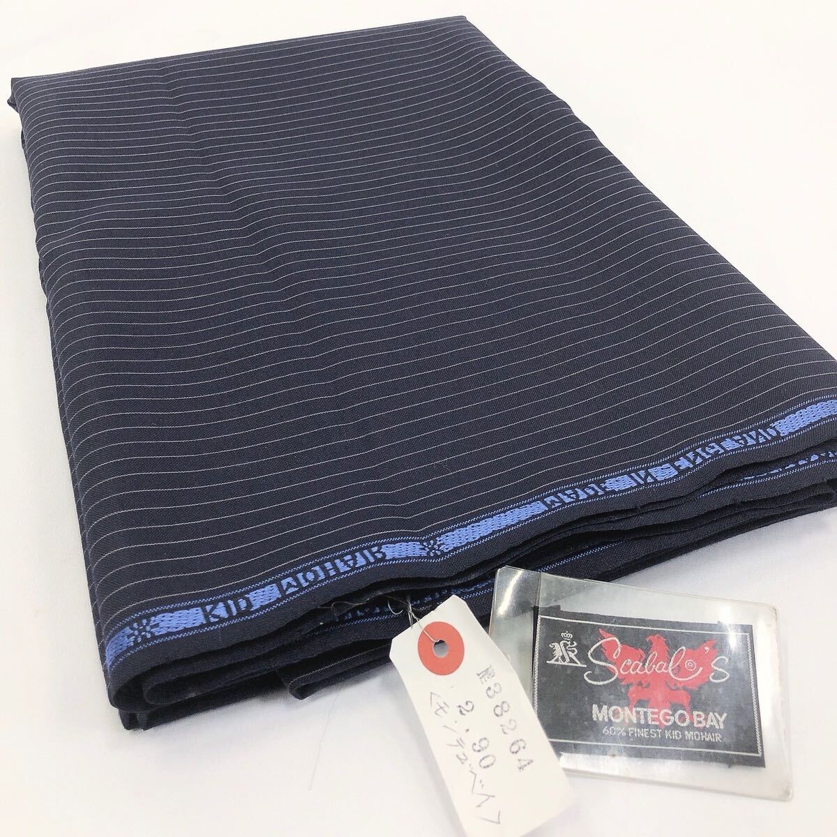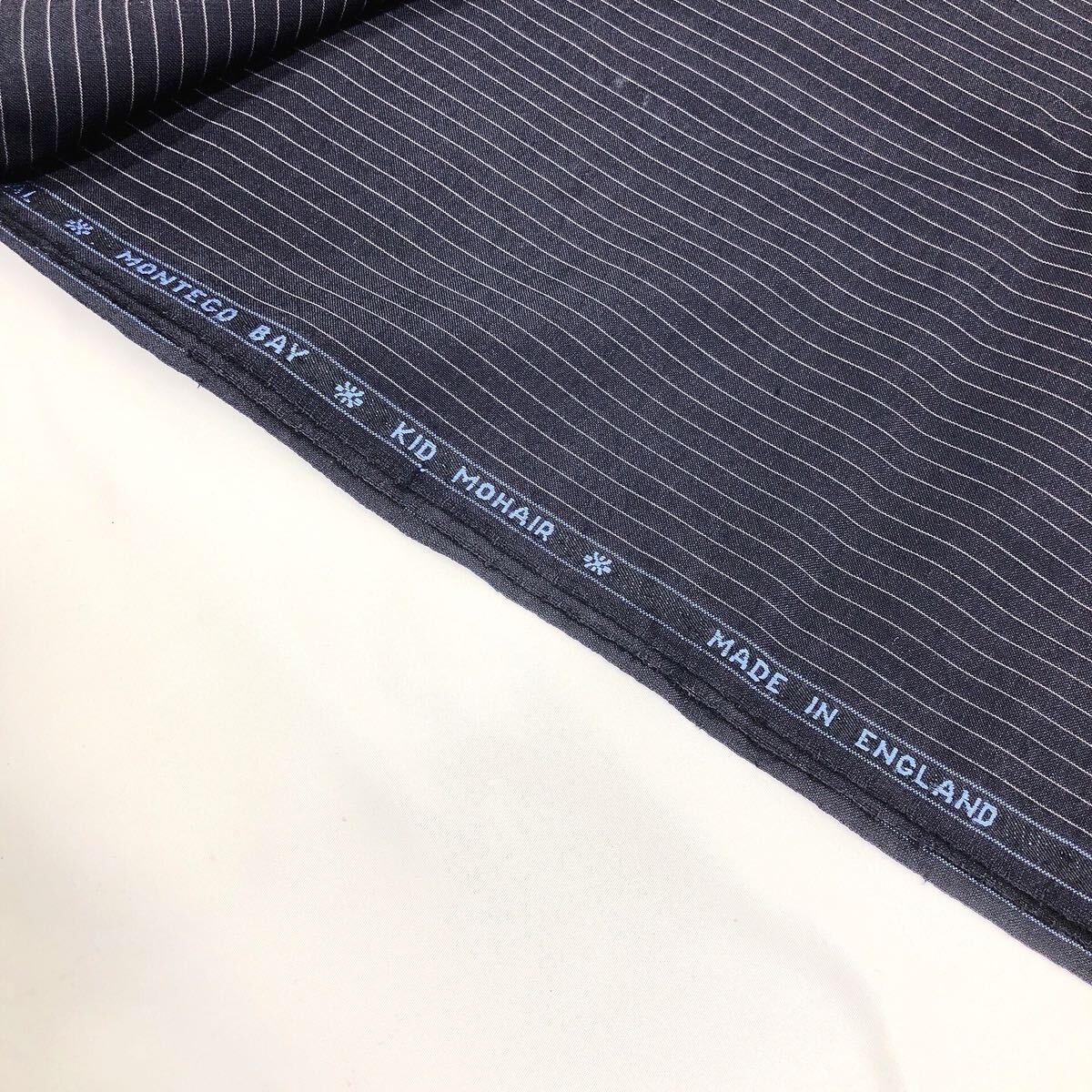 ★2-1004③ 未使用長期保管品 Scabal モンテゴベイ MONTEGO BAY KID MOHAIR イギリス製 ストライプ 生地 スーツ生地 はぎれ 生地 約838g