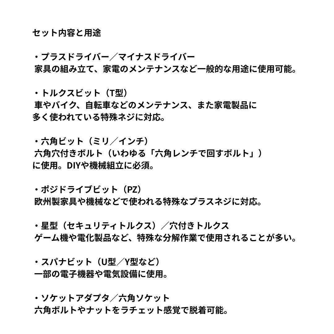 ・豊富なビット種類でDIYからプロの整備作業まで幅広く対応