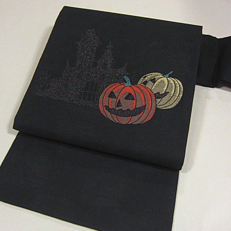 Product name: ハロウィン!新品【御仕立上】西陣織九寸名古屋帯 ハロウィン かぼちゃ コウモリ パーティー 黒地