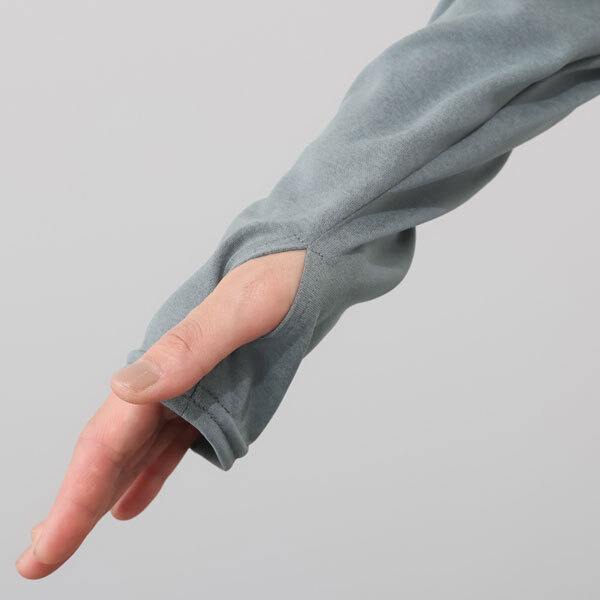 袖先には親指を通す穴を配しており、手の甲までをカバー。