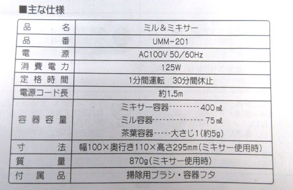 ■サイズ:幅100×奥行110×高さ295mm※ミキサー使用時