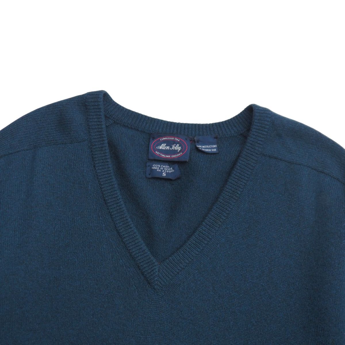 TI8826+スコットランド製*80~90s*ヴィンテージ*Allen Jolly/アレンジョリー*メンズS*総カシミヤ*Vネック*ニットセーター*ソリッドセーター*ブルー系