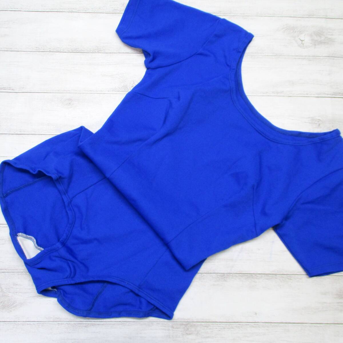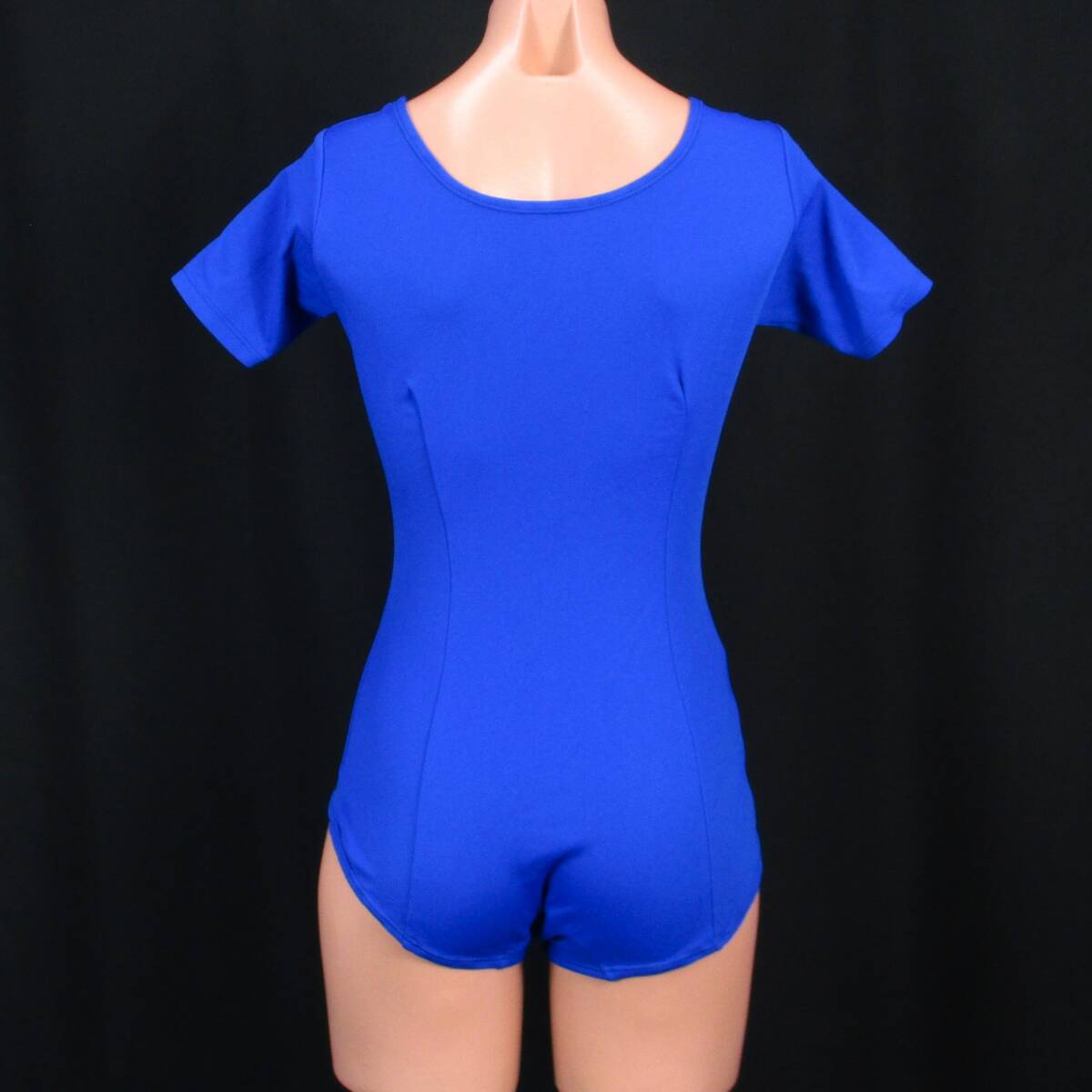 E9605★大きいサイズ レオタード バレエ 半袖 ブルー 青 無地 レディース 女子 衣装 器械体操 新体操 ダンス 競技 エアロビ