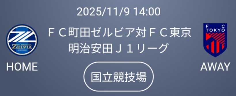 【2枚連番】11/9(日) FC町田ゼルビア対FC東京 J1 国立競技場 カテゴリー4北(1層) ビジターグッズ着用不可