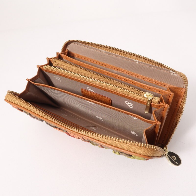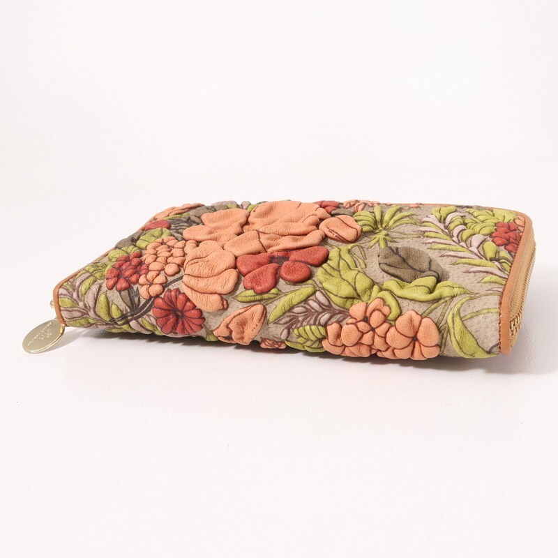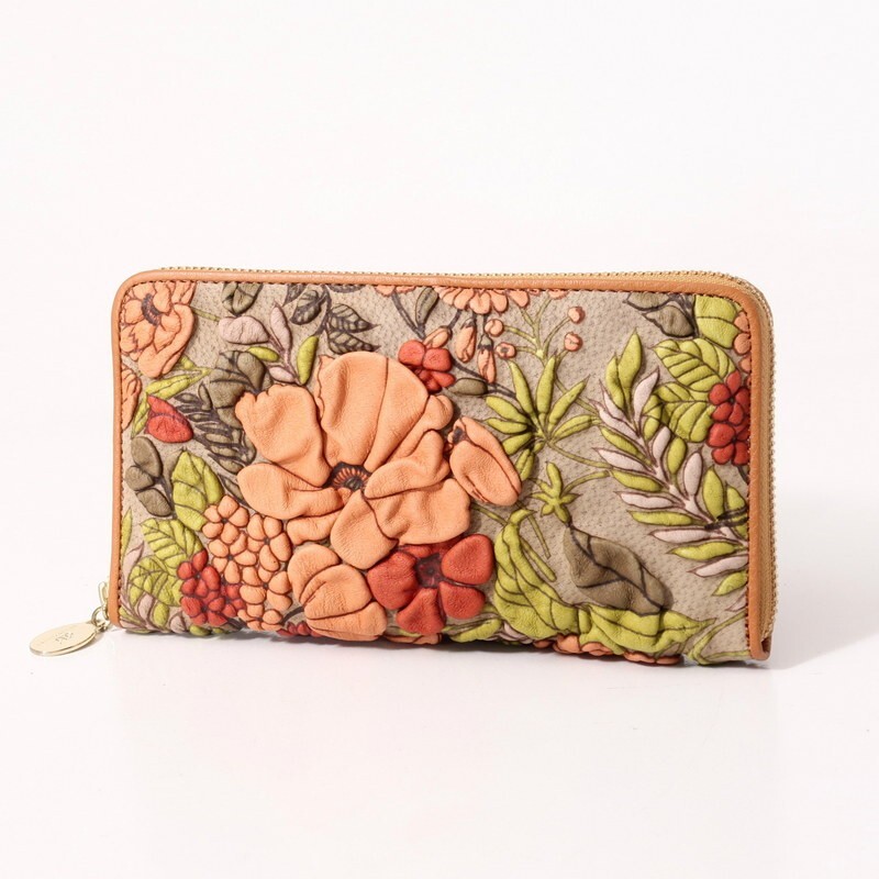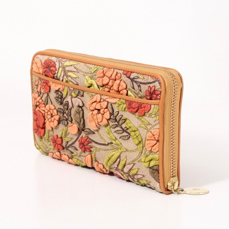 GS4111■美品 decobranche デコブランシェ KYOUKA 京香 レザー 長財布 ロングウォレット ラウンドファスナー 本革 花柄 オレンジ系