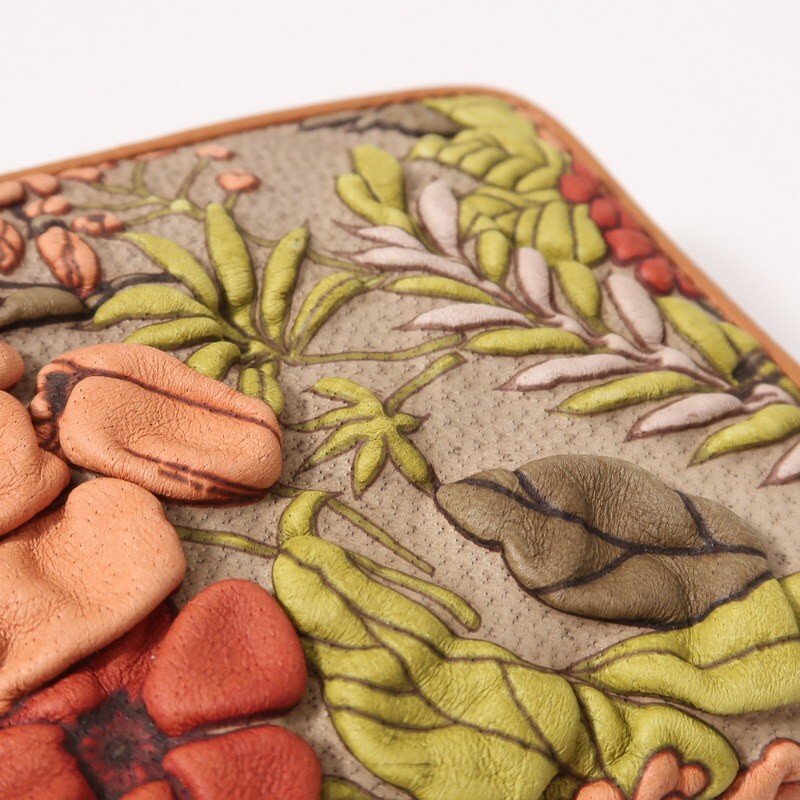 商品詳細 京都伝統の友禅技法と特殊加工で仕上げた立体模様の革を用い、熟練の職人により完成された新感覚のバッグブランド『decobranche デコブランシェ』の長財布です。