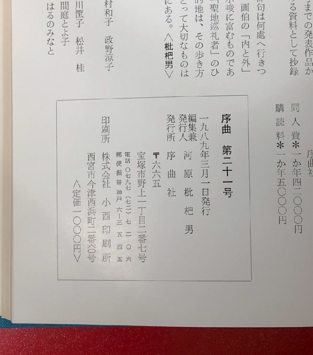 Product name: 【某家コレクション】河原枇杷男 序曲 第21号/第24号 序曲社 平成元年/昭和64年発行 俳人 俳句雑誌