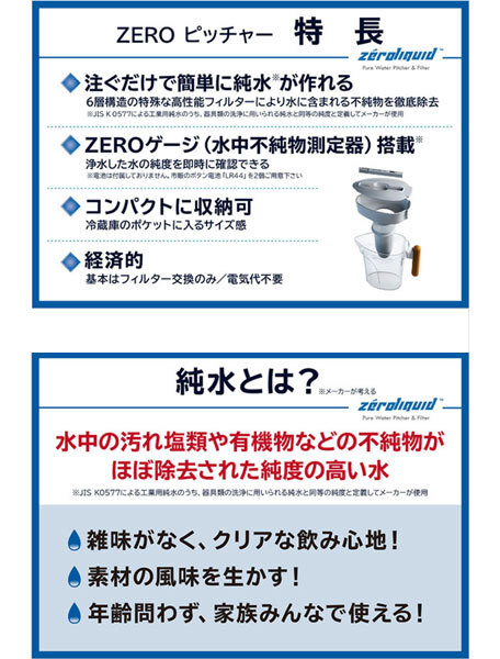 内 容 ■6層浄水フィルター搭載 素材の味を引き立てる ZEROピッチャー