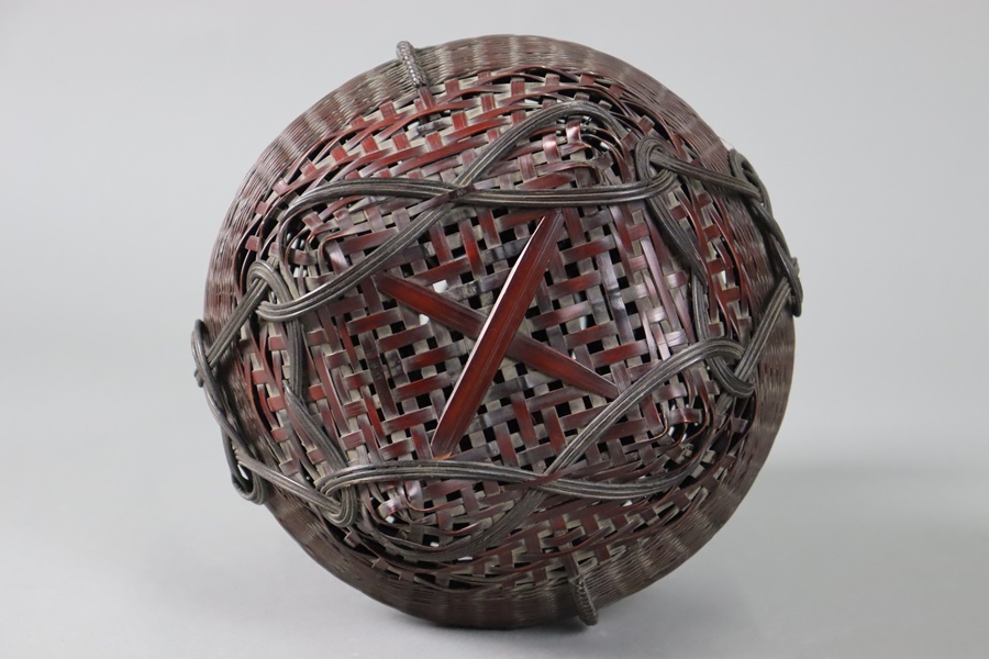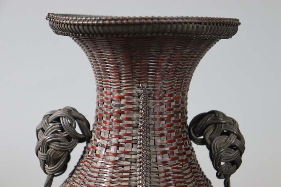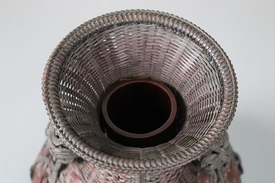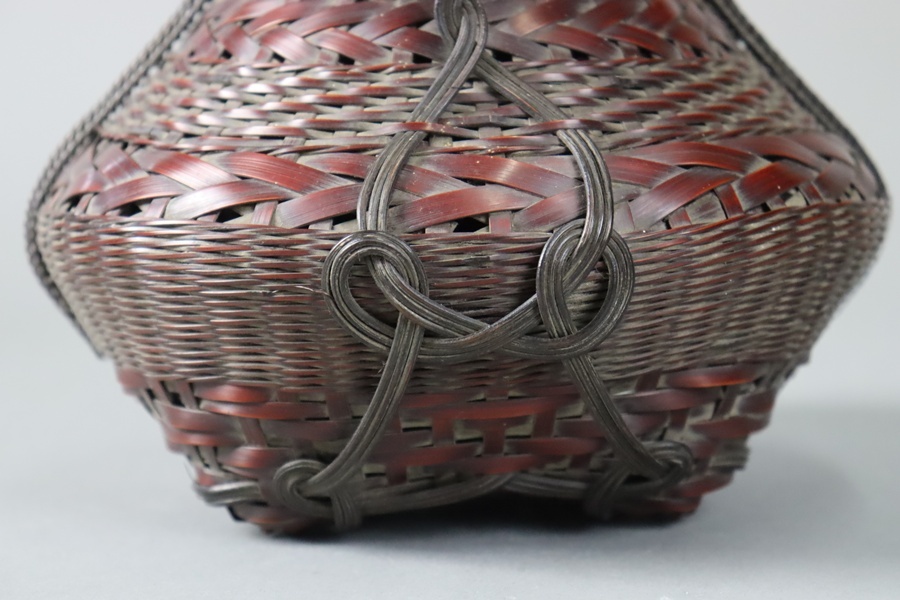 Product name: 茶道具 竹翠造 唐物写 耳付掛置花藍 高22,8cm 共箱 竹細工 花籠 細密細工 古美術品[d1135]