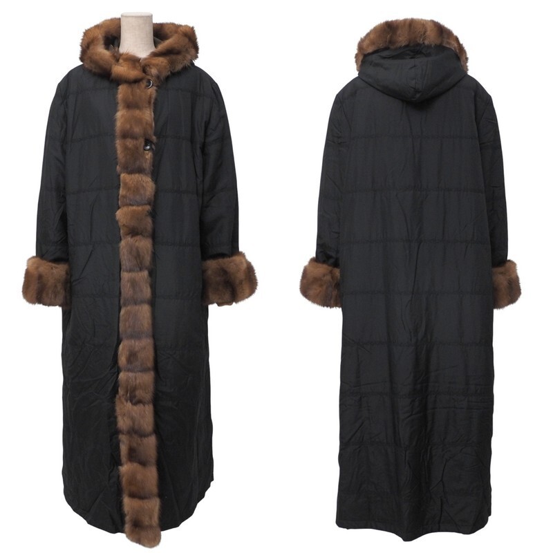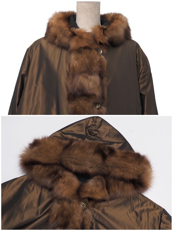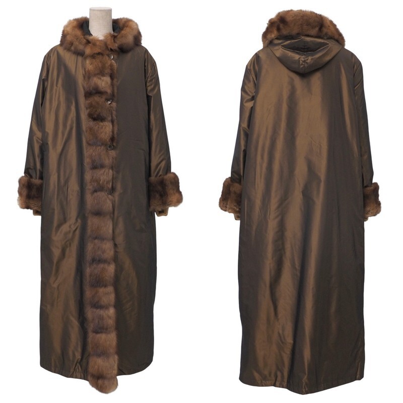 Product name: GR4572□ホワイトベアー/WHITE BEAR リバーシブル シルク セーブルファートリミング リアルファー ロングコート サイズF ブロンズ系/黒系