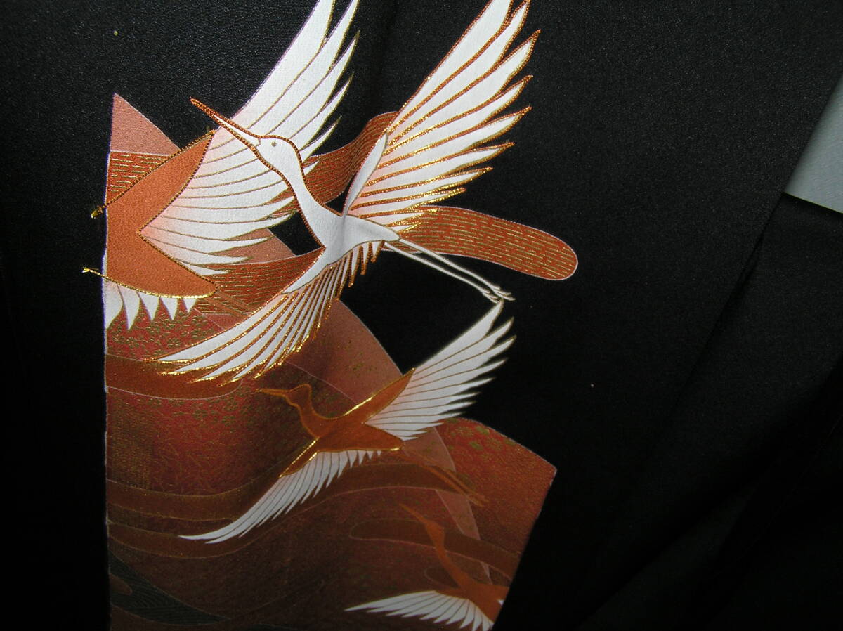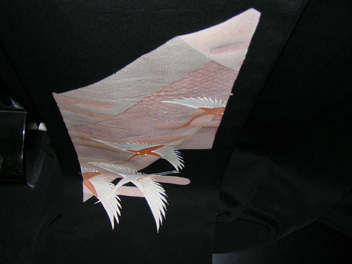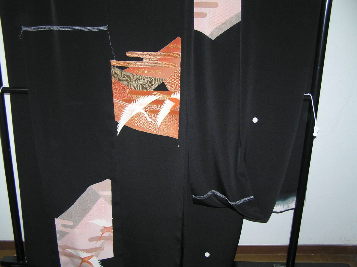 Product name: どんぶらこ★仮絵羽★黒留袖★石持★手描きと金駒刺繍の華麗な友禅★飛翔鶴★東京ますいわ屋★未使用・未仕立て