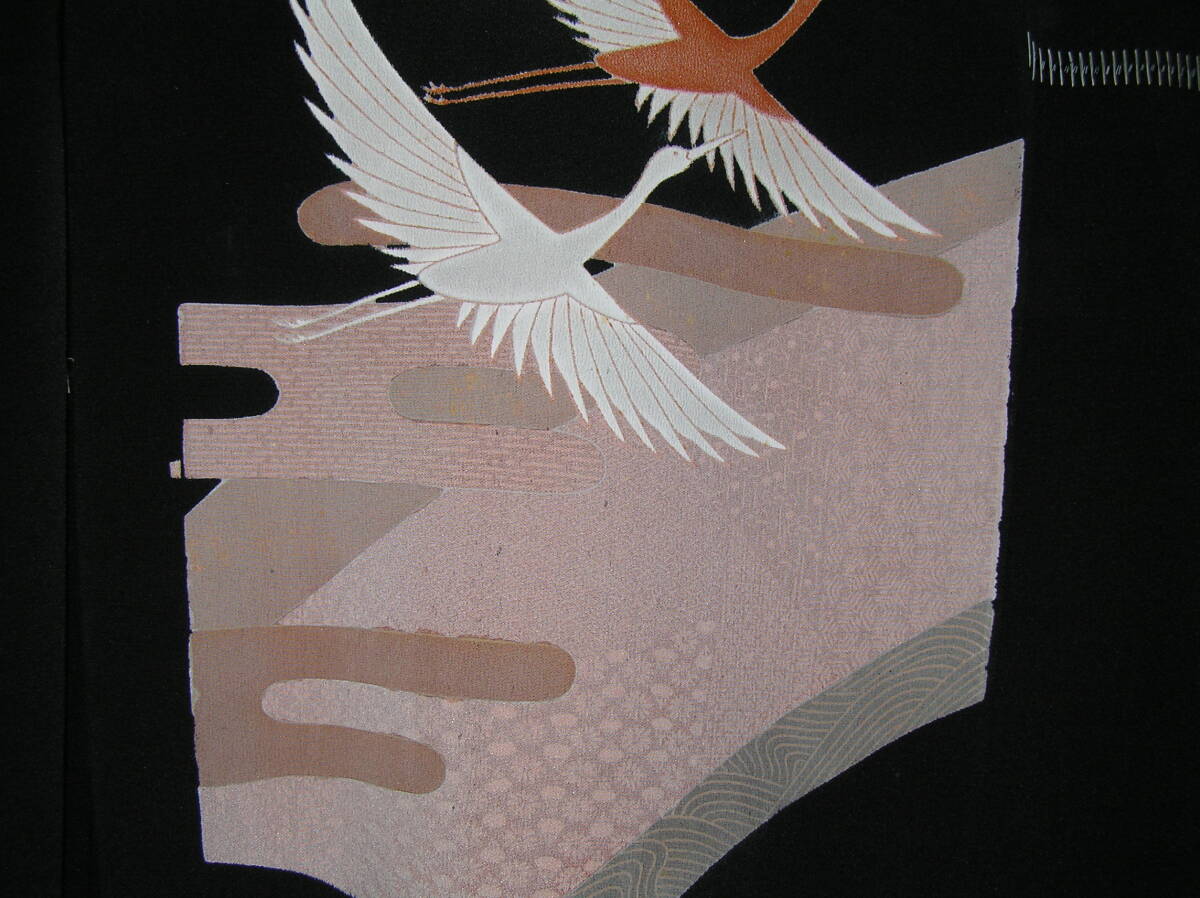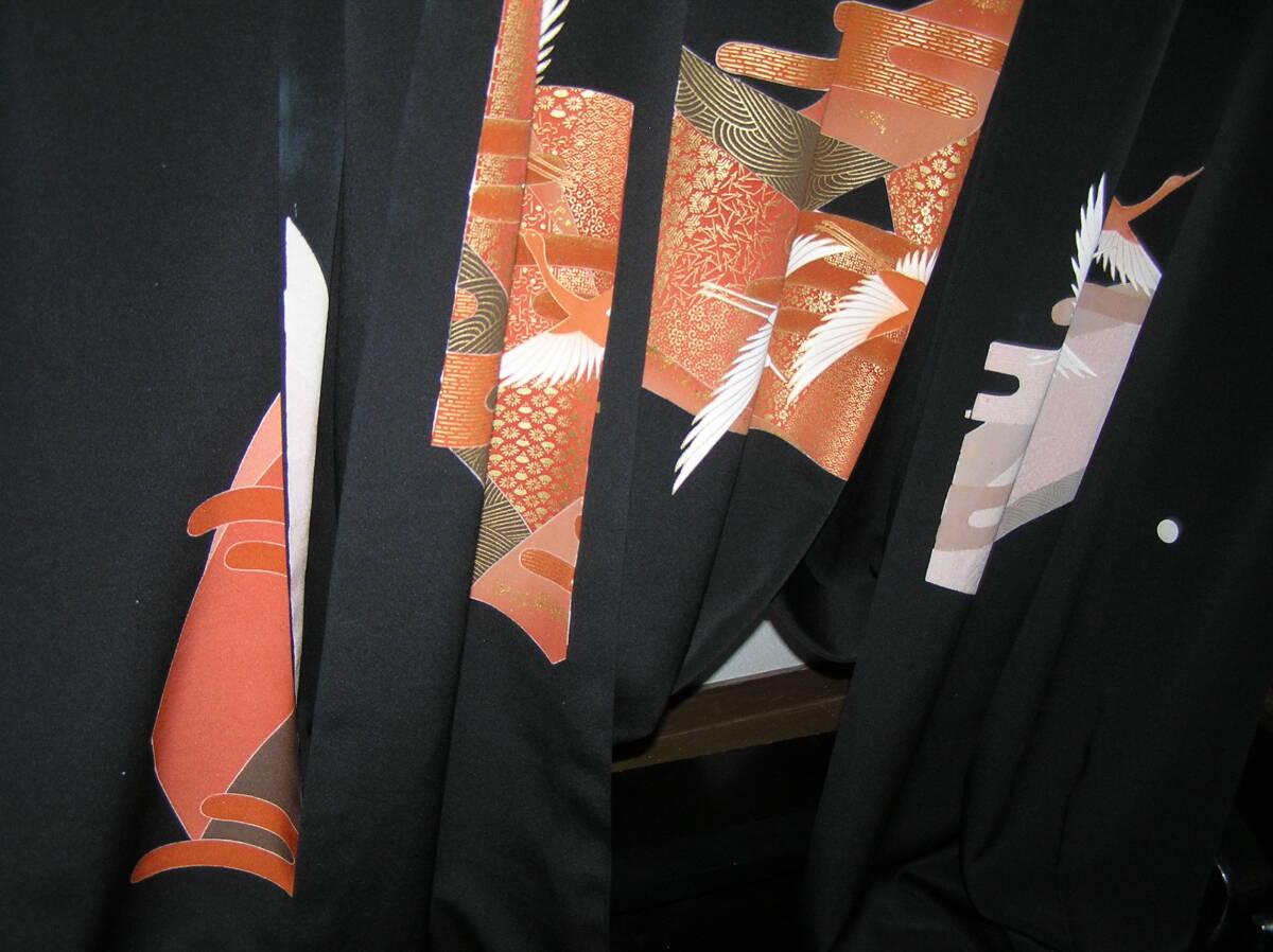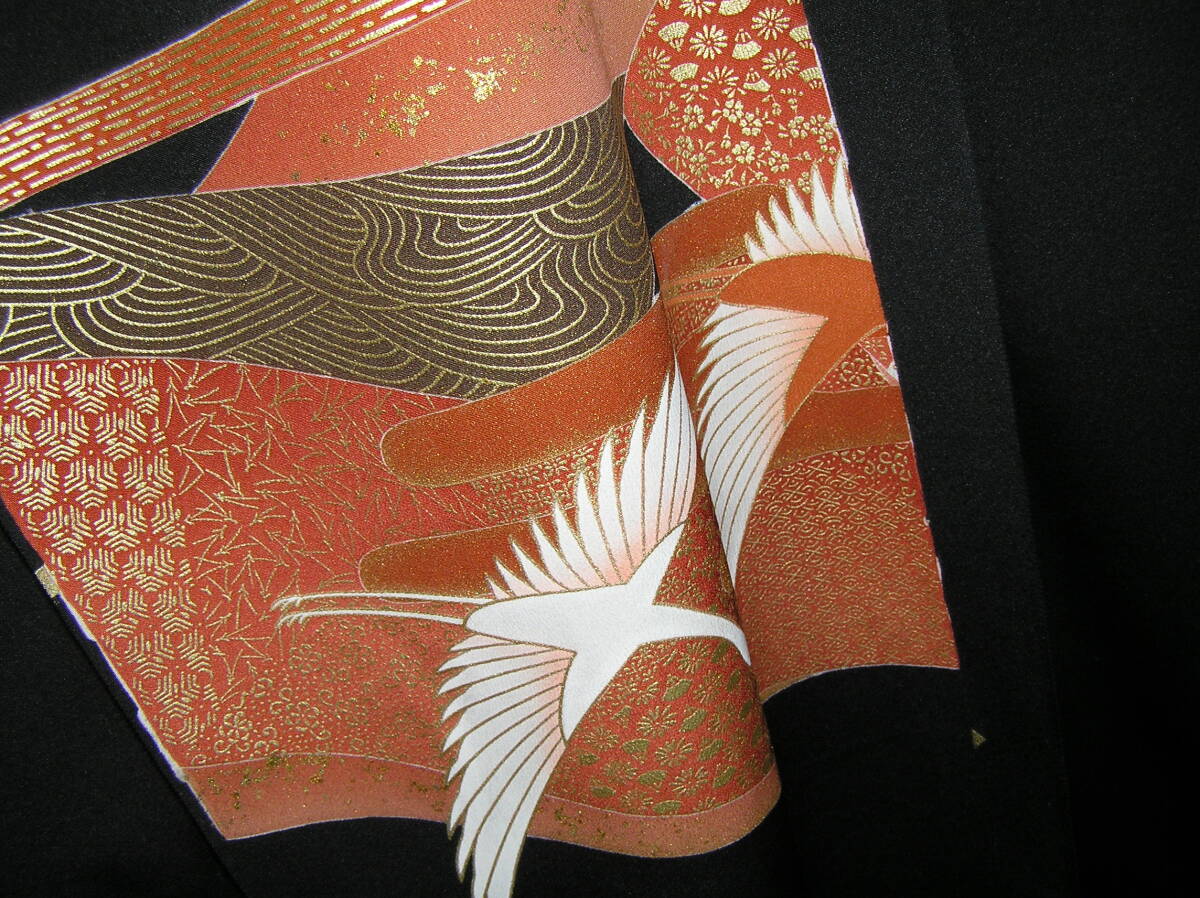 Product name: どんぶらこ★仮絵羽★黒留袖★石持★手描きと金駒刺繍の華麗な友禅★飛翔鶴★東京ますいわ屋★未使用・未仕立て