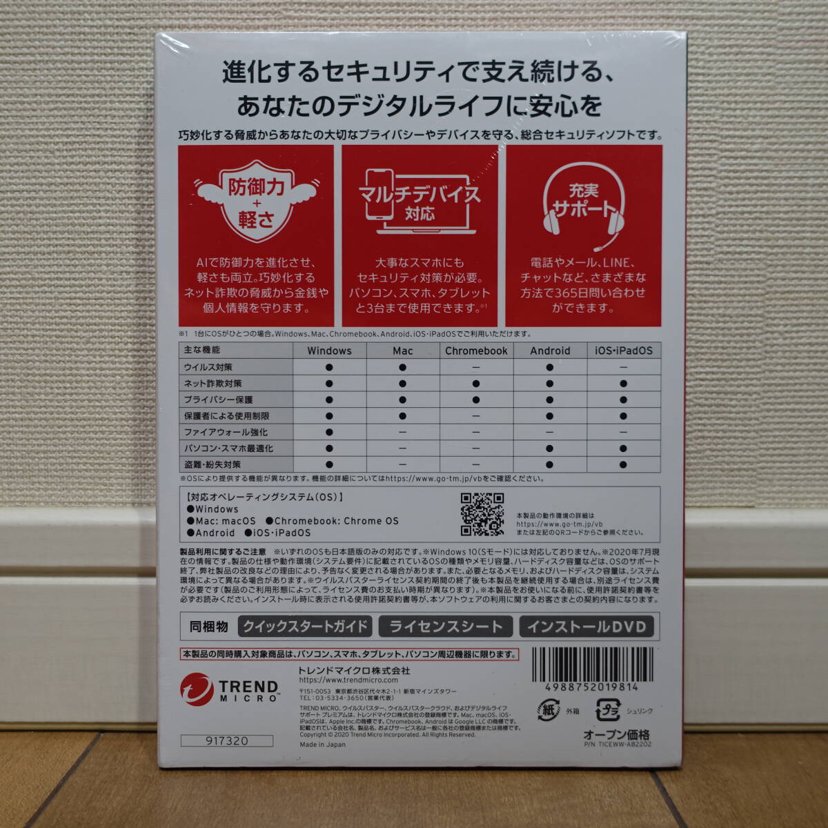 Product name: トレンドマイクロ ウイルスバスタークラウド 3年版 3台まで Windows Mac スマートフォン 未開封