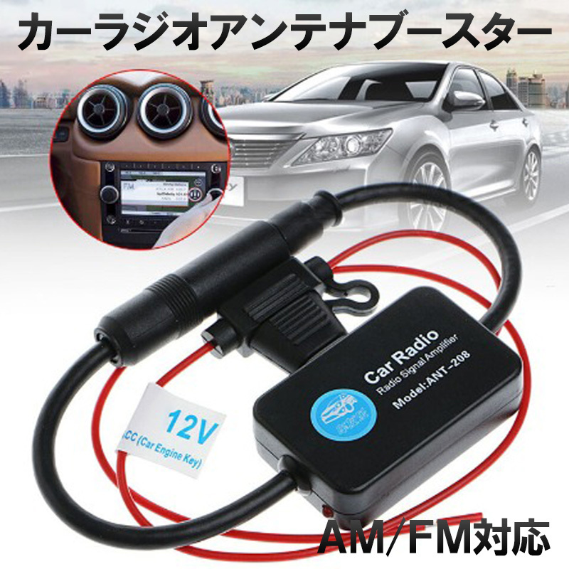 アンテナブースター カーラジオ カーナビ オーディオ VICS AM FM バンド 12V ラジオブースター 空中信号 受信感度 信号増幅 アンテナ 汎用