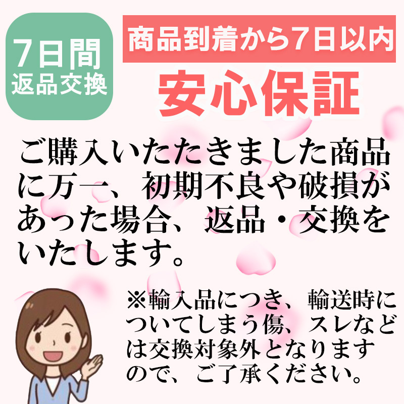 ●商品に不良や破損がある場合は、到着後7日以内にご連絡をいただければ、返品・交換をいたしますので、安心してお買い求めください。