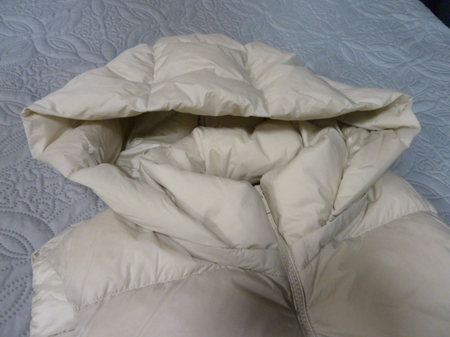 自己紹介を読んで下さいね。ユニクロ ウルトラライト ダウンの オフホワイトの ボリューム Wファスナー ベストす。目立つシミや色あせやキズ等は無いと思います。サイズはL記載で、実寸、肩幅37cm、身幅53cm、着丈61cm、裾幅58cmくらいです。素材は、表裏、ナイロン100、中綿、ダウン90、フェザー10です。裾シャーリングです。フードはファスナーで取り外し出来ます。お手持ちのお洋服と合わせて下さいね。レタパ600円発送がお安いです。ノークレームノーリターンでお願い致します。