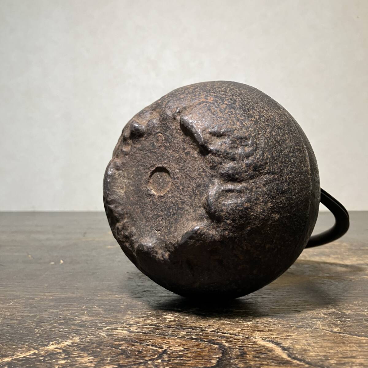 Product name: 京都⑧ 時代物 金龍堂 名人 佐野 造 日ノ丸形 小振り 鉄瓶 身在銘 1076g 煎茶道具