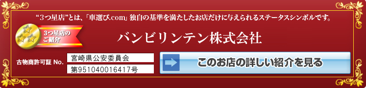 “3つ星店”とは「車選びドットコム」独自の基準を満たした販売店だけに与えられるステータスシンボルです。