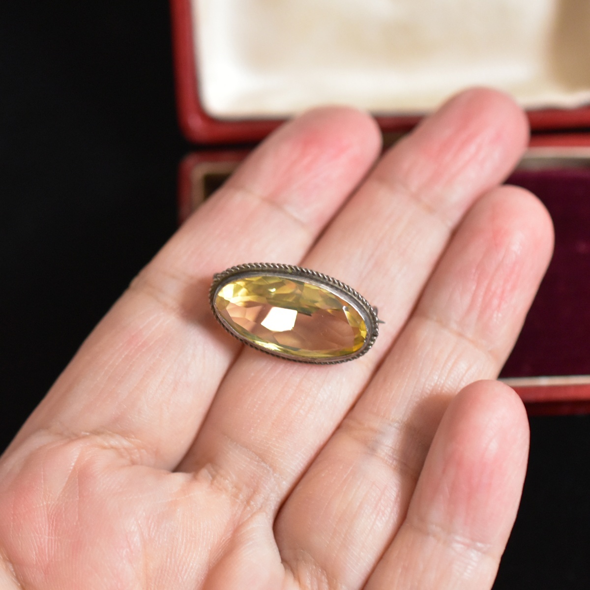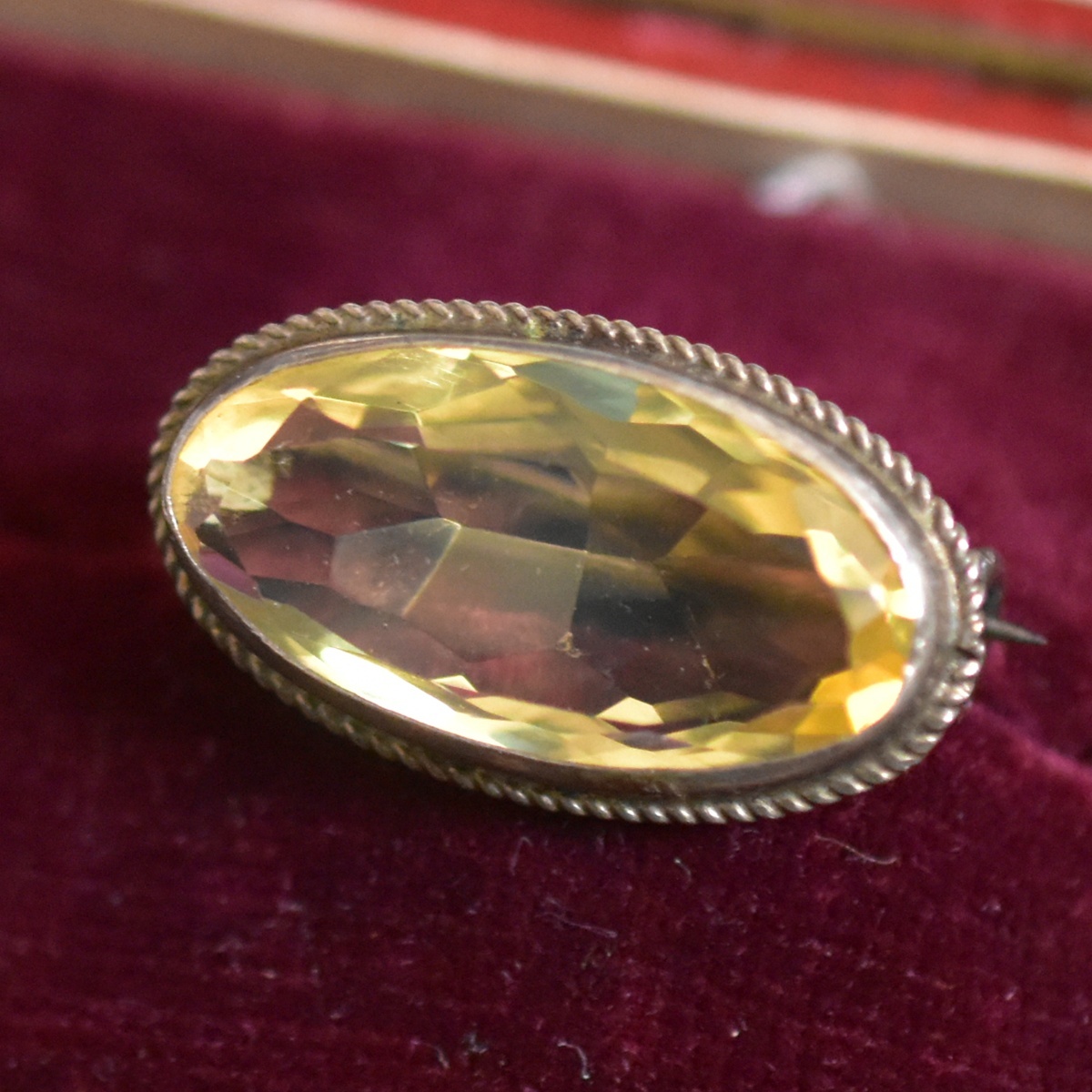 アンティーク 天然シトリン/黄水晶の豪華なレースピン/ブローチ 銀製/Silver/シルバー より線細工 美しいブローチ 本物保証